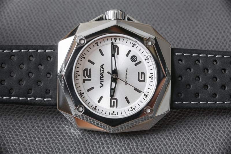 VRT系列中的大部分新奇價值在于表殼設計,重點在于大膽的八角斜面設計。表圈中的四個大六角螺絲有助于傳達主題,并進一步暗示產品的陽剛工業感。幾何設計在整個表殼和表盤中占據主導地位。設計 VRT1.6 和其他 VRT 模型的家伙一定對圓形和曲線邊緣有嚴重的反感。廣告訊息廣告信息結束