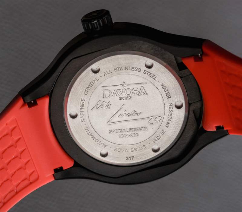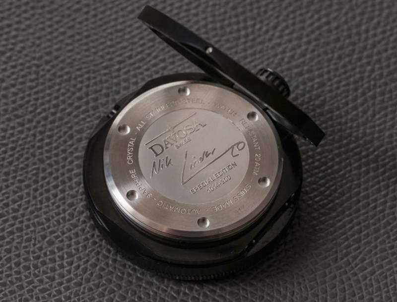 表殼背面是著名的自由潛水員 Nik Linder 的浮雕簽名,Davosa 與他一起開發了 Apnea Diver 手表。他是少數佩戴這款腕表并能充分利用其功能的人之一。然而,這并不能完全解釋為什么 Davosa 包含可以從表帶上取下內殼的功能。這也恰好是手表寬 46 毫米(厚 12.5 毫米)的原因,但實際上它的磨損程度與您希望的一樣。我也喜歡手表在手腕上的方向如何讓表殼稍微支撐一下,這樣一目了然。