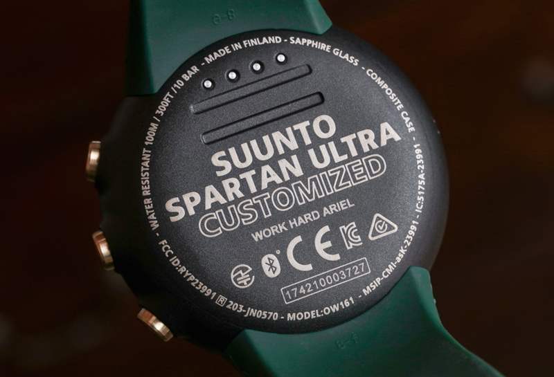 了解 Suunto Spartan 腕表系列的眾多層面之一是,許多模型都是可定制的。Suunto Spartan 購買流程中這種不常見且受歡迎的元素也是讓客戶支付全額零售費用的一種非常聰明的方式。使用 Suunto 網站,Spartan Ultra 手表有一系列受歡迎的設計選擇,從表圈和按鈕顏色(每種顏色均可單獨選擇)到表殼和表帶顏色。雖然自定義選項幾乎完全是裝飾性的(胸帶心率監測器是一個選項),但選擇的多樣性令人印象深刻,有助于使體驗感覺高度個性化。例如,除了顏色選項外,您甚至可以選擇拋光或拉絲黑色等飾面選項。錦上添花的是能夠在背面印上自定義短語,
