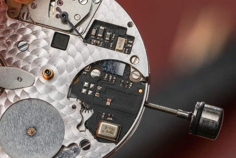 我說的是康斯登的“Horological Smartwatch”系統以及他們內部制造的全機械機芯的組合。鐘表智能手表基本上是全石英(全部或大部分是模擬表盤)產品,包含信息連接的機芯。Frederique Constant 似乎能夠設計出一種方法來獲取電子元件并將它們包裝成機械機芯。這主要通過標準 FC-700 系列自動機芯上的電子模塊完成。表盤上的四根指針與機械機芯相連,而上指針則與電子系統相連。