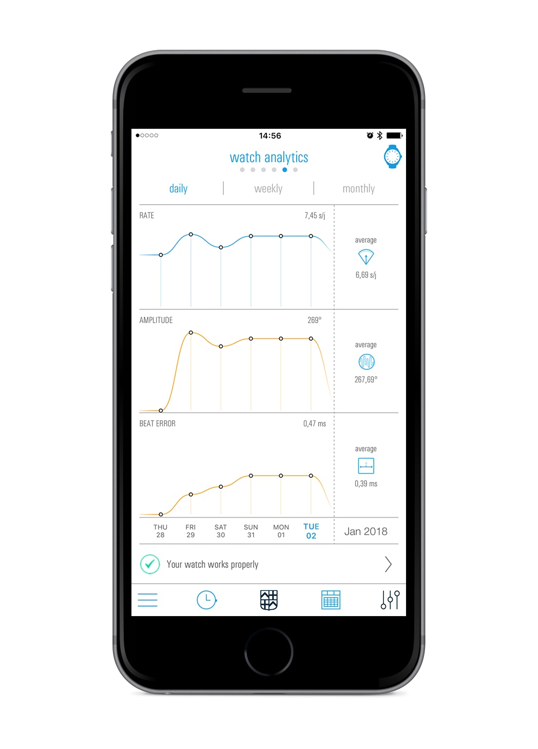 Frederique Constant 將這種“診斷工具”整合到混合制造系統中,稱為“Calibre Analytics”。這意味著除了具有一些智能手表功能(例如活動監控)之外,Hybrid Manufacture 手表還可以通過提供對機械手表性能的診斷,讓他們的所有者成為更加專注的手表書呆子。這是通過監聽運動的音頻傳感器完成的(與 Urwerk 中使用的光學傳感器相反)。通過隨附的智能手機應用程序可獲得的與運動性能相關的信息包括速率、幅度和節拍誤差)。