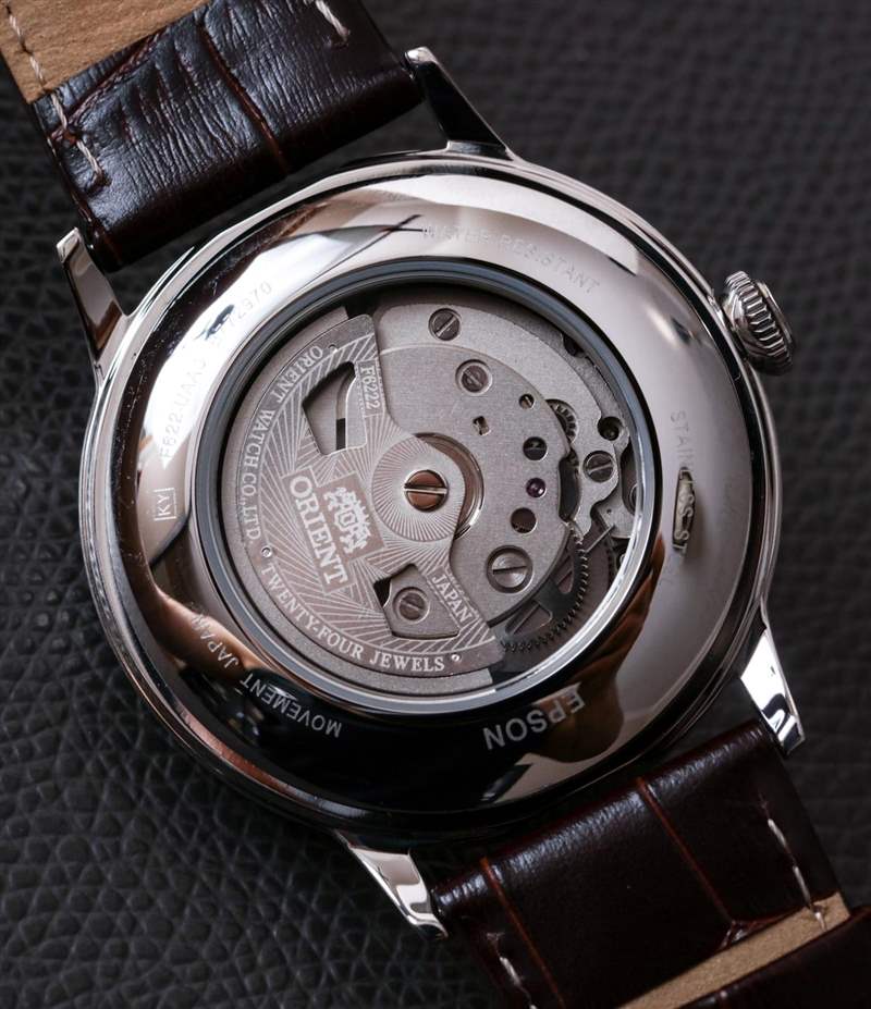您可以通過表殼后部查看機芯 – 這是一個不錯的功能。不,機芯上沒有華麗的裝飾,但為此你將不得不多花數千美元。這是關于物有所值的。讓我還要補充一點,為了錢,我見過比體面的(以工業方式)機芯 F6222 更糟糕的機芯,甚至比這更貴。東方甚至在自動轉子上放了一個漂亮的圖像。總之,對于大約 300 美元的價格,我認為 Orient Bambino SS 的機芯是完全可以接受的。廣告訊息廣告信息結束