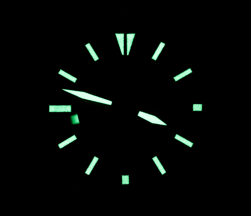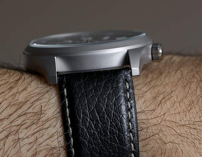 42 毫米寬的表殼在手腕上適度佩戴,就像野外手表一樣,12 毫米厚的噴砂鋼表殼讓您舒適地坐在手腕上。這款手表有一個旋入式表冠(奇怪地拋光而不是噴砂),這有助于提供 100 米的防水性能。平面水晶是礦物玻璃,并且似乎有一些受歡迎的 AR 涂層,這進一步有助于使其最佳易讀性。