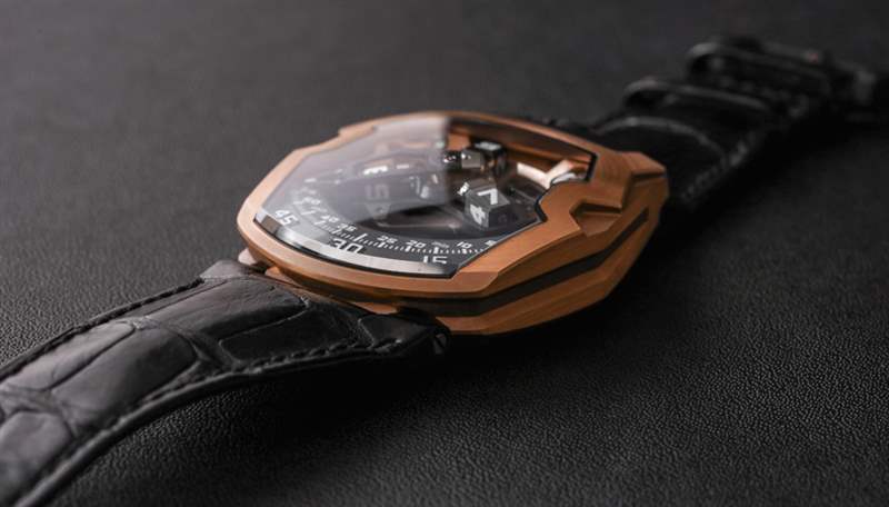 大多數版本的 UR-210 都是鋼制的,這使得這款紅金模型與眾不同。雖然貴金屬 Urwerk 時計絕不是新事物,但引人注目的貴金屬外殼 Urwerk 時計僅次于鋼和鈦等更實用的金屬。當然,這與省錢無關,因為我們談論的手表平均每塊售價可能為 100,000 美元。這真的只是品牌的主題和重點,它不是舊世界的奢侈品,而是未來主義的會議機制。廣告訊息廣告信息結束