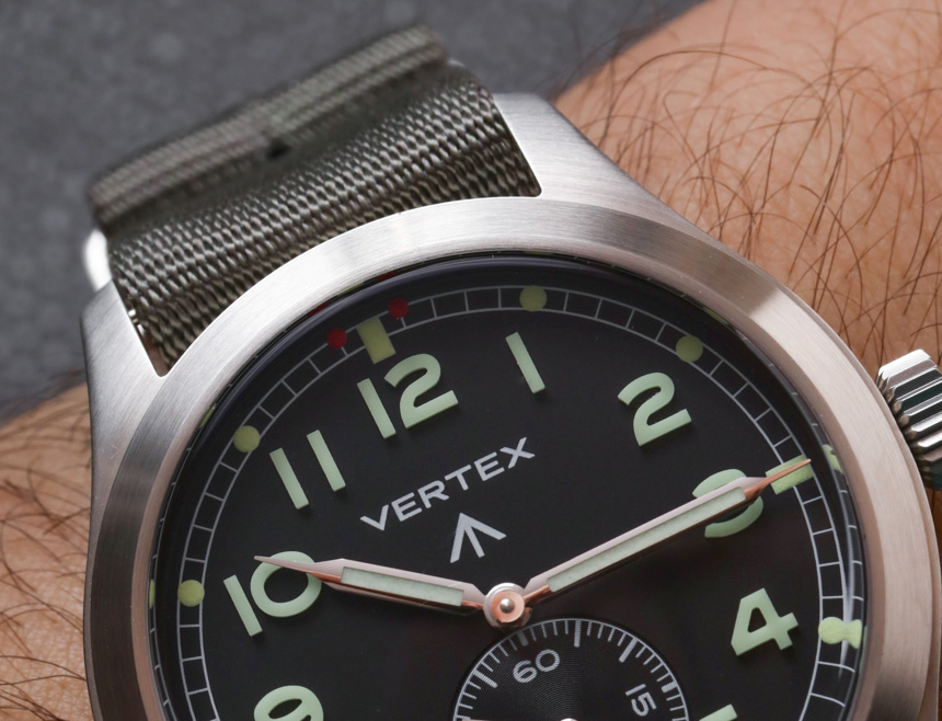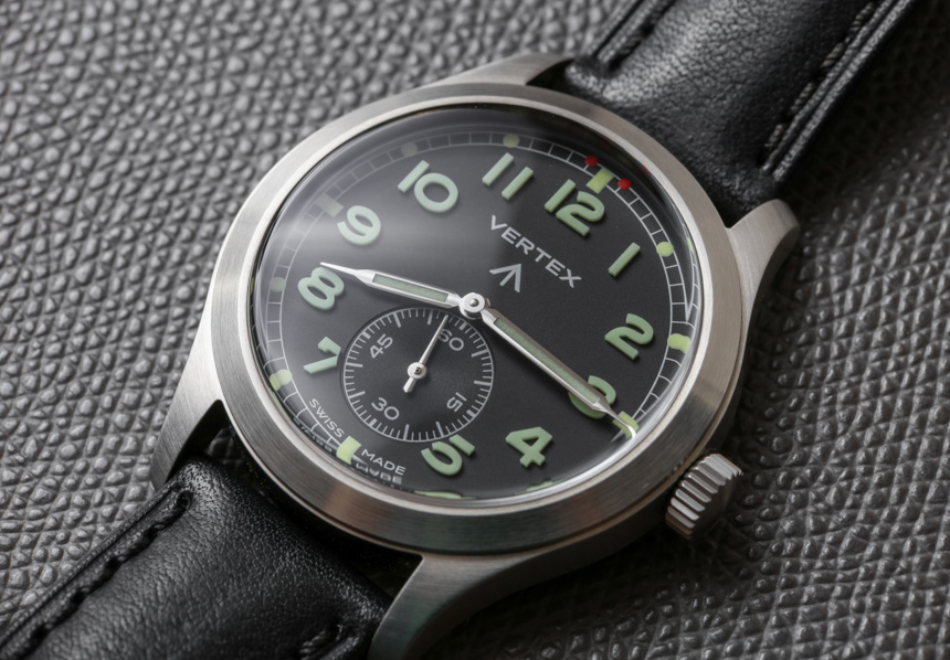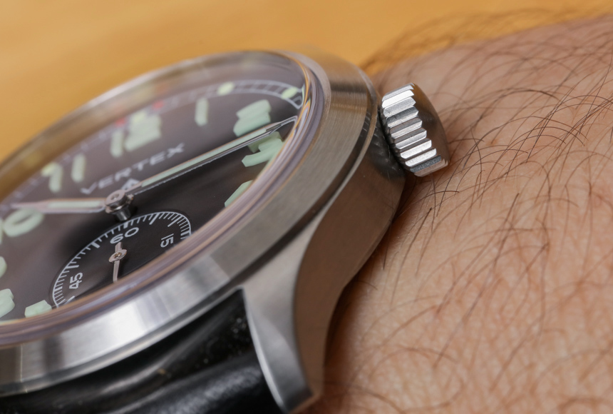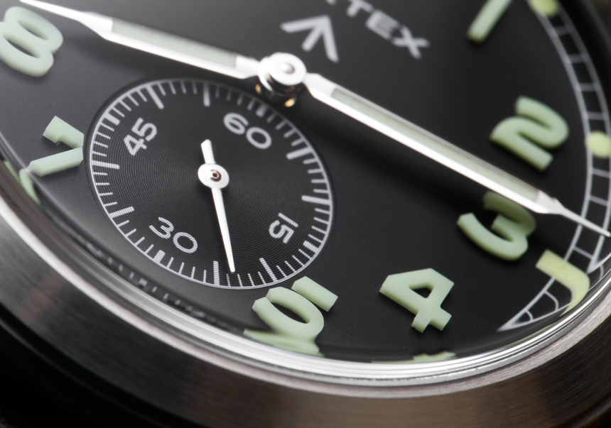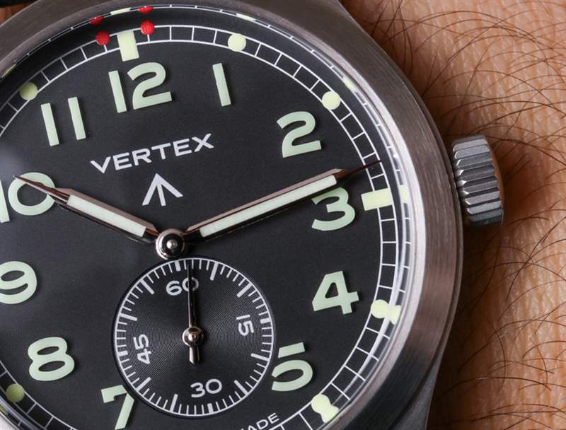 沒有日期,甚至沒有自動機芯……至少我認識的一些鐘表純粹主義者變得活潑起來。對于輔助秒針位置并保持原手表的手動上鏈機芯,Vertex 選擇了瑞士 ETA Peseux 7001 機械機芯。這基本上是一個較小尺寸的懷表機芯,工作頻率為 3Hz(21,600bph),具有 42 小時的動力儲存。拋光的指針不會影響易讀性,手表的整體構成感覺像是一種很好的方式來享受 20 世紀中期二戰時期軍用手表設計的功能和懷舊(這聽起來很有趣,但在手表世界中,是一個大類)。