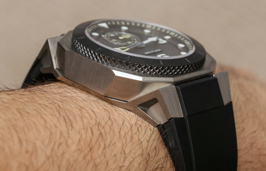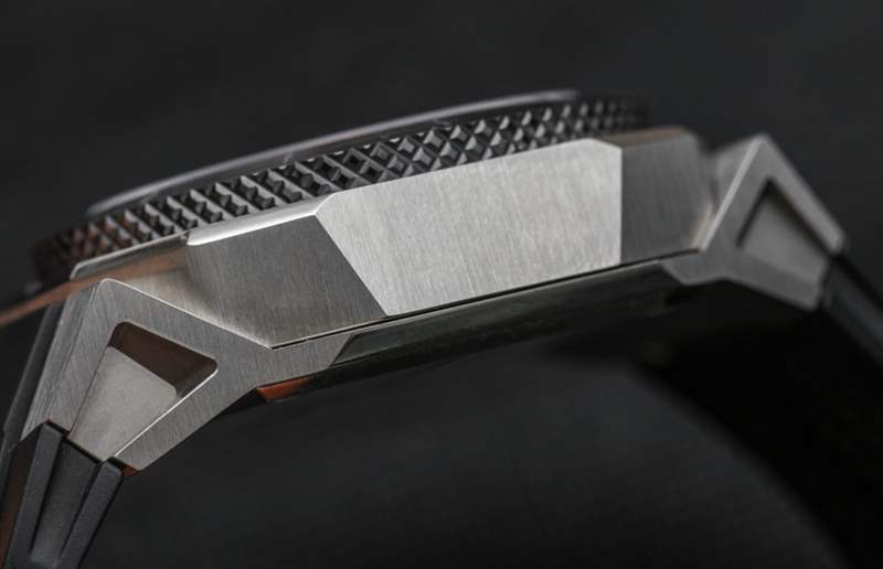 沃爾瑟姆不再是一家美國公司,但這些手表的靈感來自沃爾瑟姆為美國軍方制造的老式軍用時鐘。還有一個不那么微妙的嘗試,讓 Waltham XA 系列具有“德克薩斯大小”的感覺。Waltham 還生產尺寸略小的 AeroNaval AN-01,但 XA(包括已審查的 XA Pure)具有 47 毫米寬的鈦金屬表殼——由于其更堅固的表殼設計,感覺更大。表殼和一體式表耳的鋒利幾何線條看起來既有趣又有趣。5級鈦金屬表殼經過精心加工,表圈周圍是一塊厚厚的黑色陶瓷,頂部經過拉絲處理,側面有滾花紋理。如果 XA 系列缺少任何東西,那肯定不是有趣的案例細節。