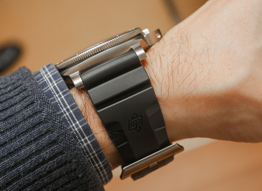 附在 Luminor Submerisble 1950 BMG-TECH 表殼上的是一條簡單的黑色橡膠潛水式表帶。如果沒有人知道,您幾乎會認為沛納海想要謹慎地解釋為什么要使用這種特殊類型的表殼材料。沛納海網站本身確實以技術方式討論了大塊金屬玻璃,但在他們關于消費者可能會選擇這種材料的原因的信息中,有點未能直截了當。更重要的是,PAM 692 不是限量版的一部分,因此這意味著沛納海對這種材料在市場上的表現感到好奇,并對擴大生產持開放態(tài)度。