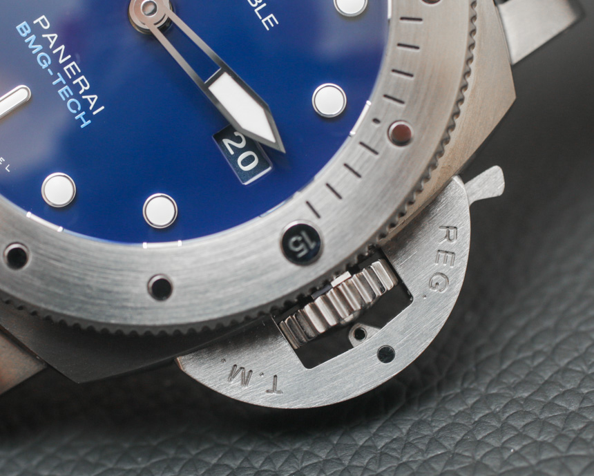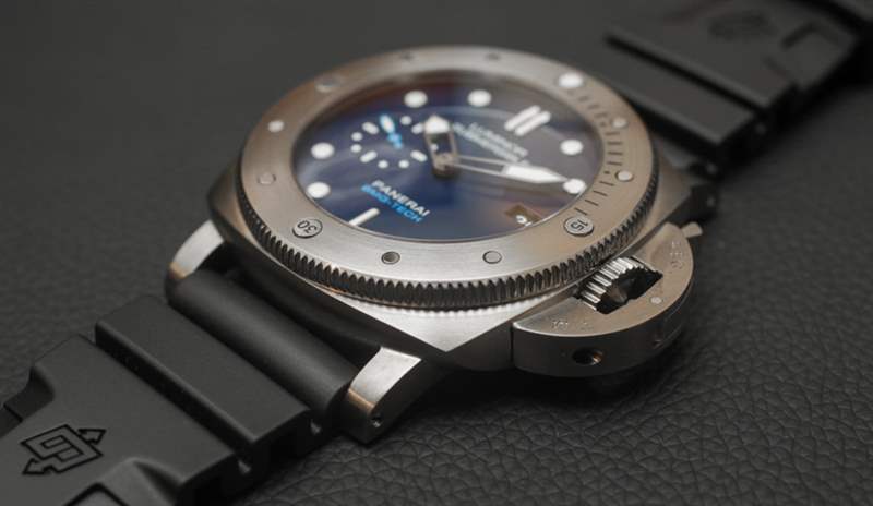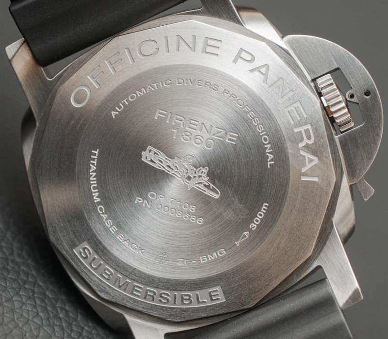 其他品牌使用各種類型的合金,例如表殼。我記得 Audemars Piguet 有時會使用一種他們稱之為“Cermet”(陶瓷金屬)的材料來制作表圈,也可能是整個表殼的材料。金屬陶瓷的優(yōu)點與 BMG-TECH 相似,因為它像陶瓷一樣堅韌,但具有金屬的視覺外觀。金屬陶瓷的顏色有點深,所以它讓我相信塊狀金屬玻璃對于這款沛納海 PAM 692 來說可能有點不同。表背是鈦,這也恰好是表殼中最多的部分細節(jié)。我的直覺告訴我,雖然大塊金屬玻璃是一種引人注目的材料,但它比大多數金屬更難加工(因此也更昂貴)。