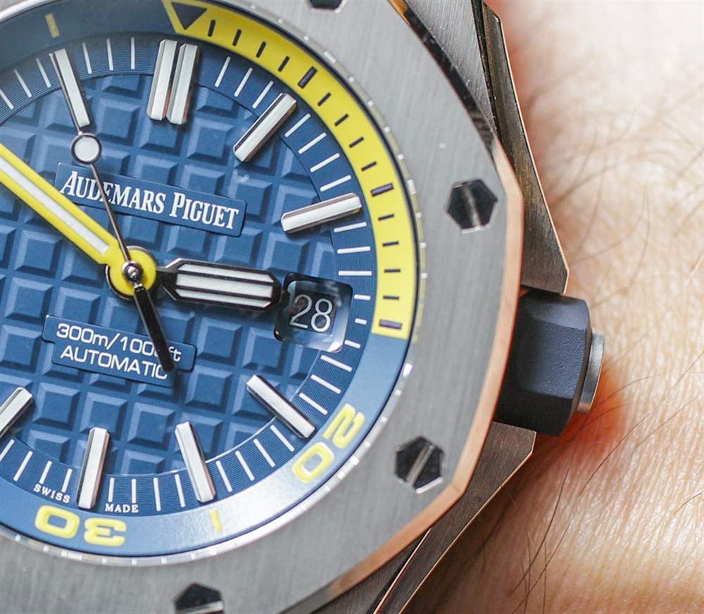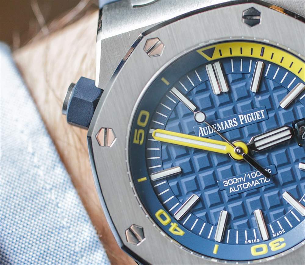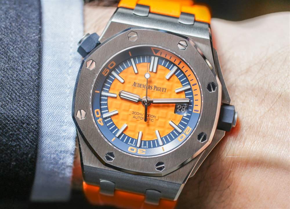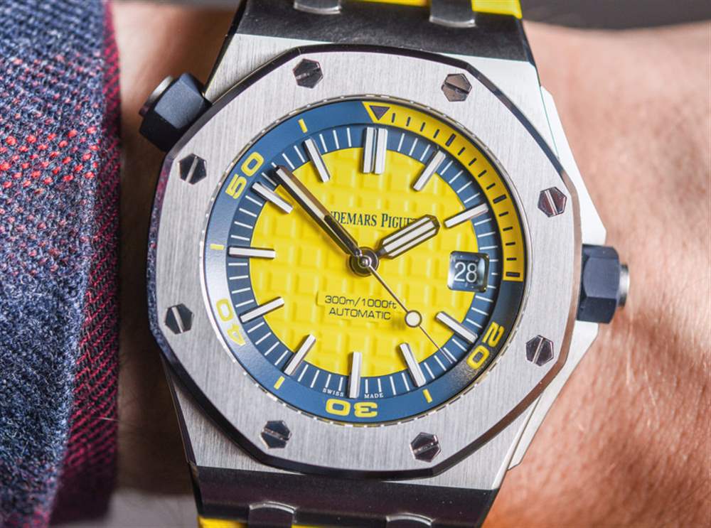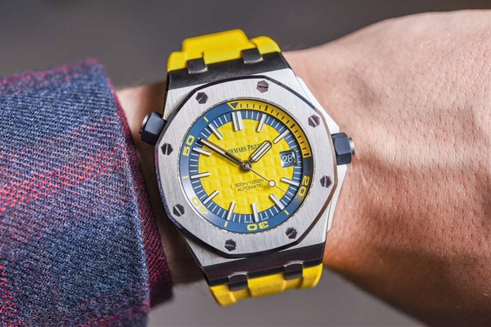 去年在 2016 年 SIHH 上,愛彼推出愛彼皇家橡樹離岸型潛水計(jì)時(shí)碼表時(shí),玩弄了將皇家橡樹離岸型潛水員裝扮成華麗色彩的想法。我發(fā)現(xiàn)有趣的是,他們首次推出了皇家橡樹離岸潛水員計(jì)時(shí)碼表(在這里動(dòng)手),完全以黃色、橙色、藍(lán)色和綠色等狂野的顏色推出……沒有一個(gè)會(huì)被認(rèn)為更保守的模型。當(dāng)然,這是一個(gè)有趣的舉動(dòng)。到目前為止,愛彼皇家橡樹離岸型潛水計(jì)時(shí)碼表除了大膽的顏色外,還沒有任何款式可供選擇。
