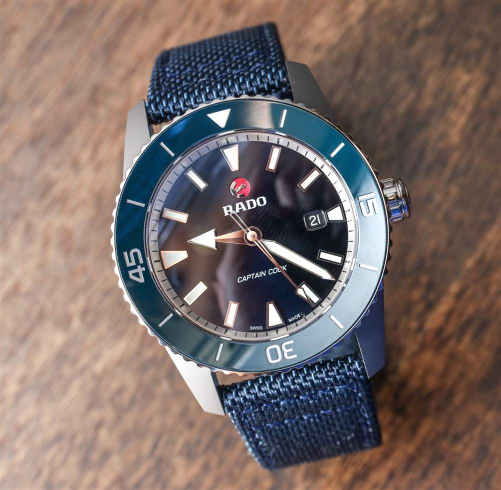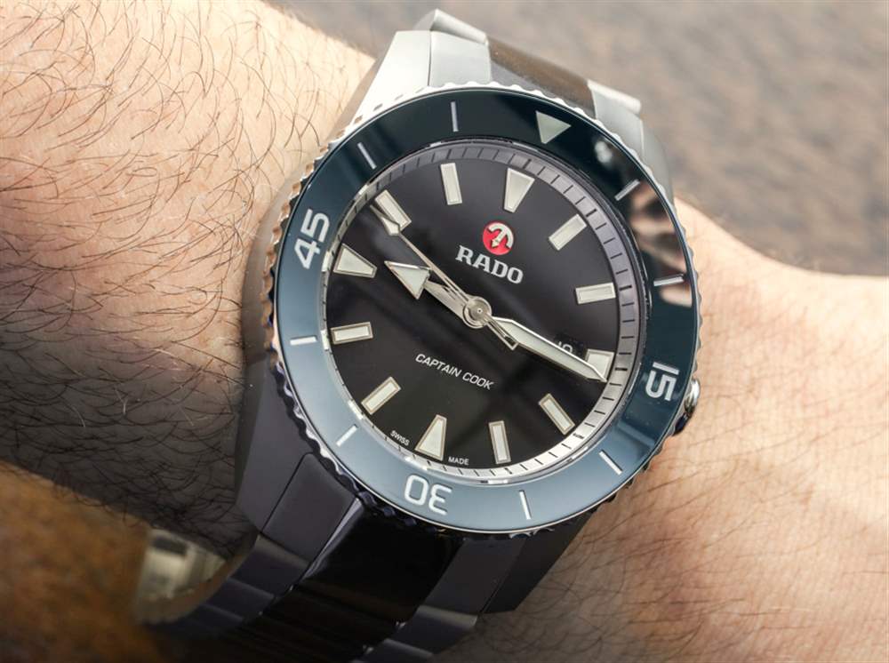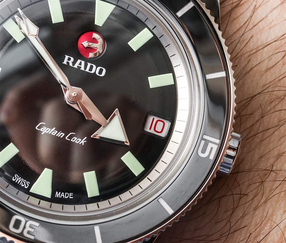 雷達需要進入樂趣,而庫克船長是那些迷人而古樸的設計之一,今天仍然看起來不錯。2017 款的設計與原始款相似,37 毫米寬的尺寸也“忠實于原始”——這意味著它們看起來確實像舊手表。除了外觀之外,RADO 庫克船長手表在材料和結構方面都非?,F代。這些 37 毫米寬的型號采用精鋼制成,拋光精美,并具有向內傾斜的陶瓷表圈(各種顏色),看起來非???。我也喜歡帶有獨特而有力的指針以及清晰時標的表盤。Rado 無法真正決定流明顏色——因此三個 37 毫米寬的型號中的每一個都有不同的發光色調。
