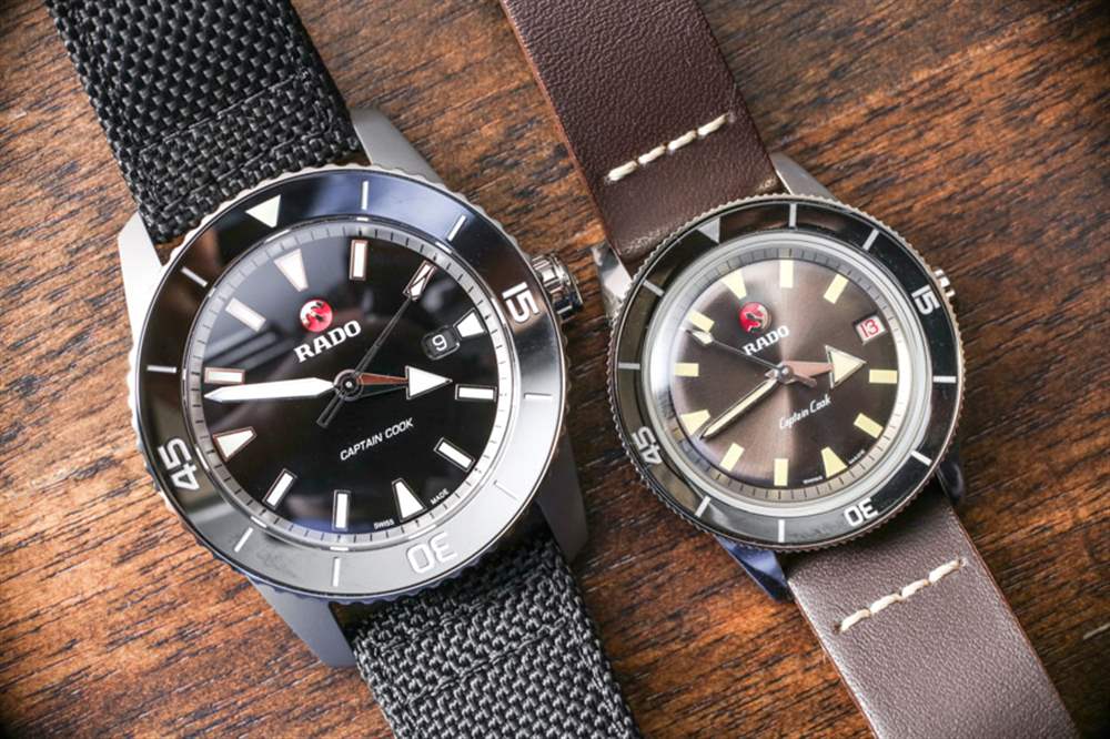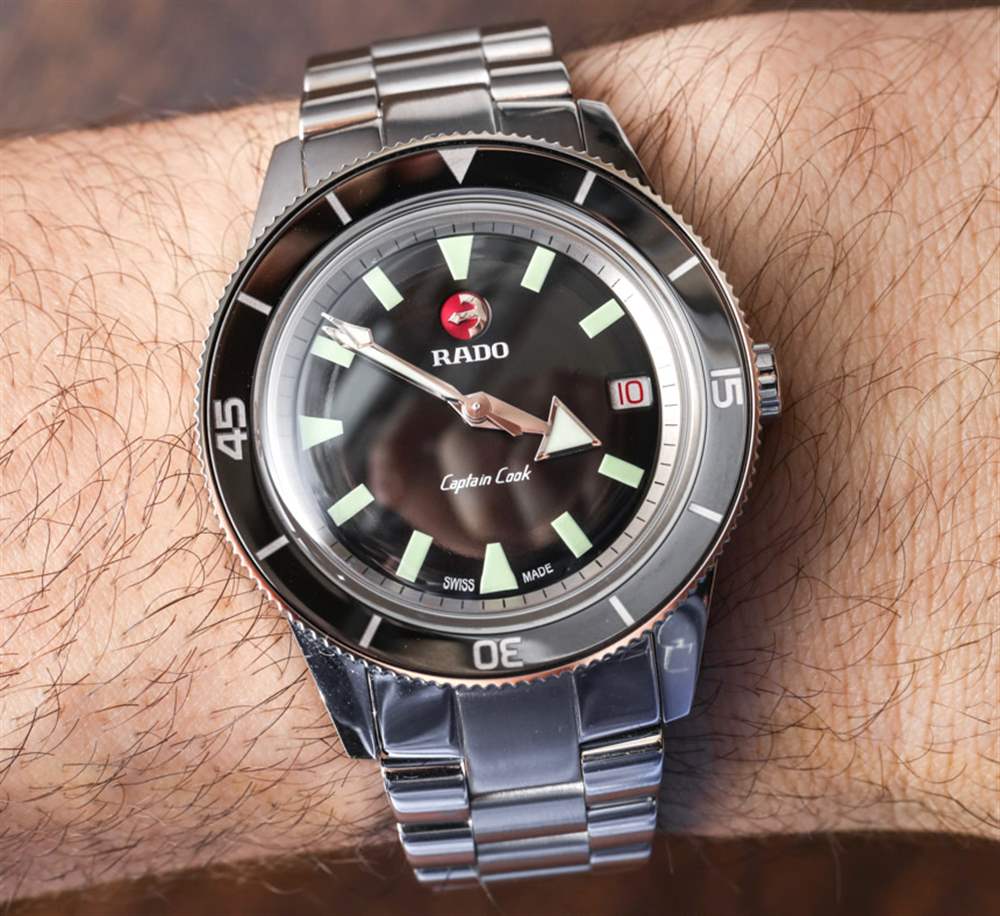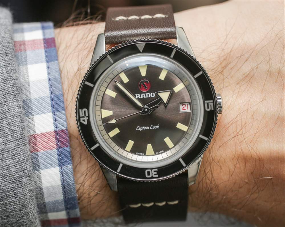 雷達在他們如何將 2017 年庫克船長模型描述為“復古復制品”方面非常直截了當。斯沃琪集團旗下的這個瑞士品牌非常清楚地表明,2017 年 Rado 庫克船長的兩款型號中的一款是 1960 年代原始 37 毫米庫克船長型號的直接復制品。與此同時,他們發布了更大、更現代的 45 毫米版本的庫克船長。我喜歡這種誠實的雙重策略,將品牌歷史中的現有產品帶回今天——迎合復古風格的手表愛好者以及現代手表愛好者。
