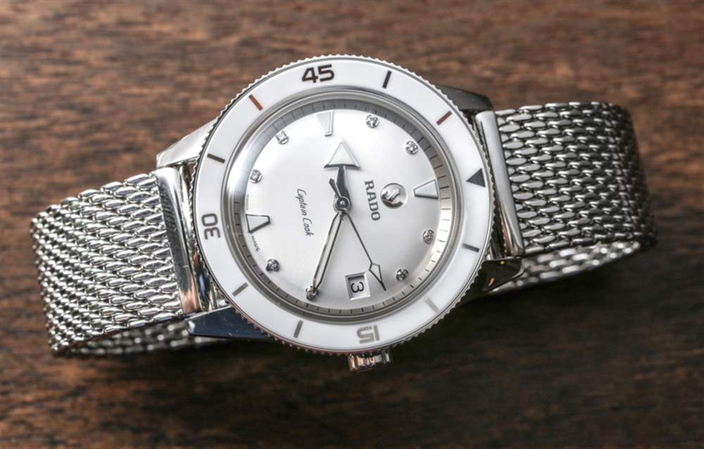 最初的 Rado Captain Cook 是一款有著迷人愚蠢名字的潛水表。2017 Rado Captain Cook 的第一個版本是 37 毫米寬的鋼制表款,共有三個版本——其中一個是限量版。對于喜歡小手表的男士或女士,Rado 正確地指出,37 毫米寬的庫克船長腕表在典型的女士手表尺寸中具有非常“男士手表”的外觀。事實上,其中一款 37 毫米寬的庫克船長型號是專為女性設計的。那是參考號 763.0500.3.070,它有一個帶有八個鉆石時標的銀色表盤、一個白色陶瓷表圈和一個米蘭風格的鋼制表鏈。廣告訊息廣告信息結束