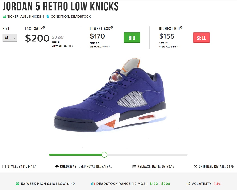 當你想開始買東西時,你會嘗試以最低的賣價購買它,所有這些信息都由 StockX 跟蹤和記錄,以便使用數據來跟蹤特定產品的需求,作為兩者的函數它的銷售價格以及可用的單位數量和交易頻率。假設有足夠的數據可供使用,StockX 平臺就供應和需求以及消費者和賣家的行為如何相互作用提供了非常引人注目的視角。這最終導致產品的實際市場價值具有可喜的透明度。