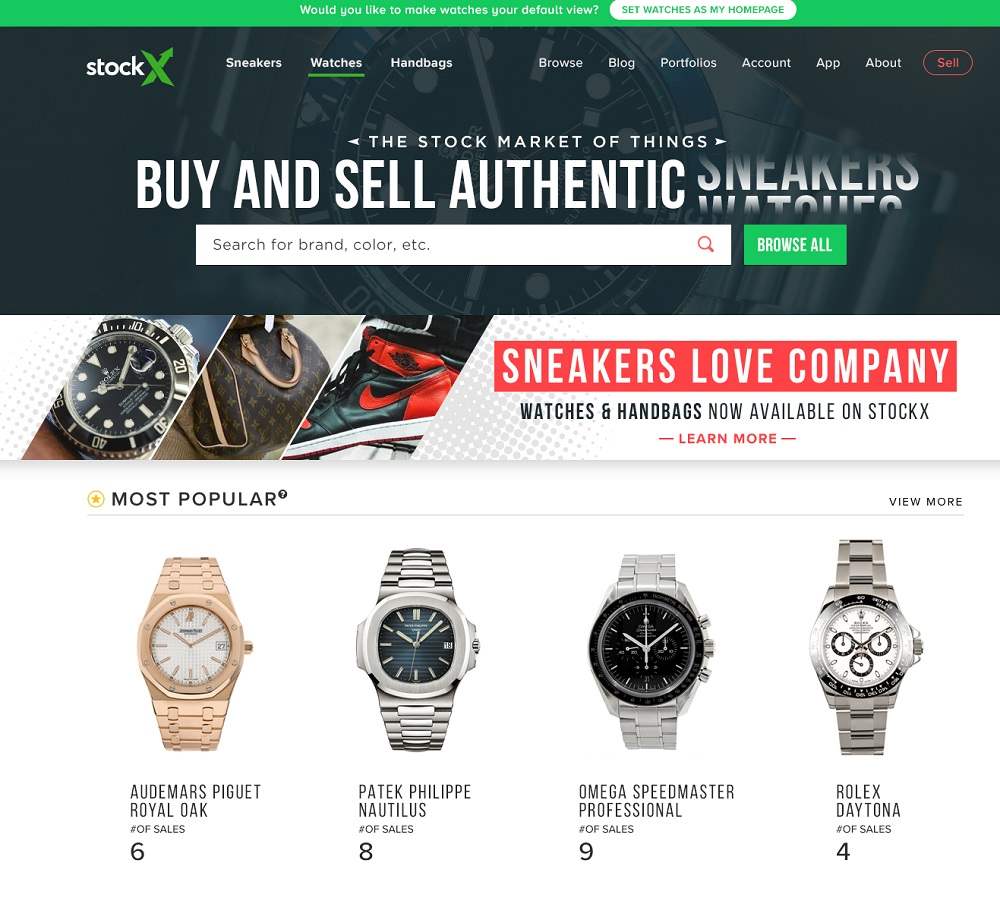 StockX 的最終目標是發(fā)現物品(作為商品)的真實和當前市場價值,以及允許買賣雙方以當前市場價格進行交易。鑒于 StockX.com 是一個買賣平臺,它是 eBay.com 以及手表列表專家網站 Chrono24.com 等網站的天然競爭對手。然而,重要的是要再次提到,StockX 帶來的不僅僅是一種身份驗證和物流解決方案,而且是一種完全不同的基于平臺進行交易的方法,幫助設定價格,而不是純粹的賣家(或買方,就此而言)。