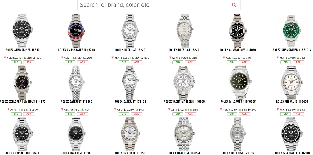 每個手表型號在 StockX 上都有自己的列表頁面。在該頁面上,有這些手表要出售的人(經銷商或個人)會提到他們的“要價”(他們愿意出售的價格),買家會指出他們的“出價”(他們的價格)愿意購買)。StockX 平臺明確了可用的單位數量,以及使用該平臺的各方的買入價和賣出價的多樣性。