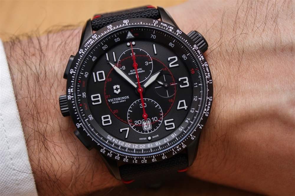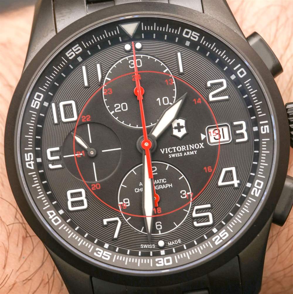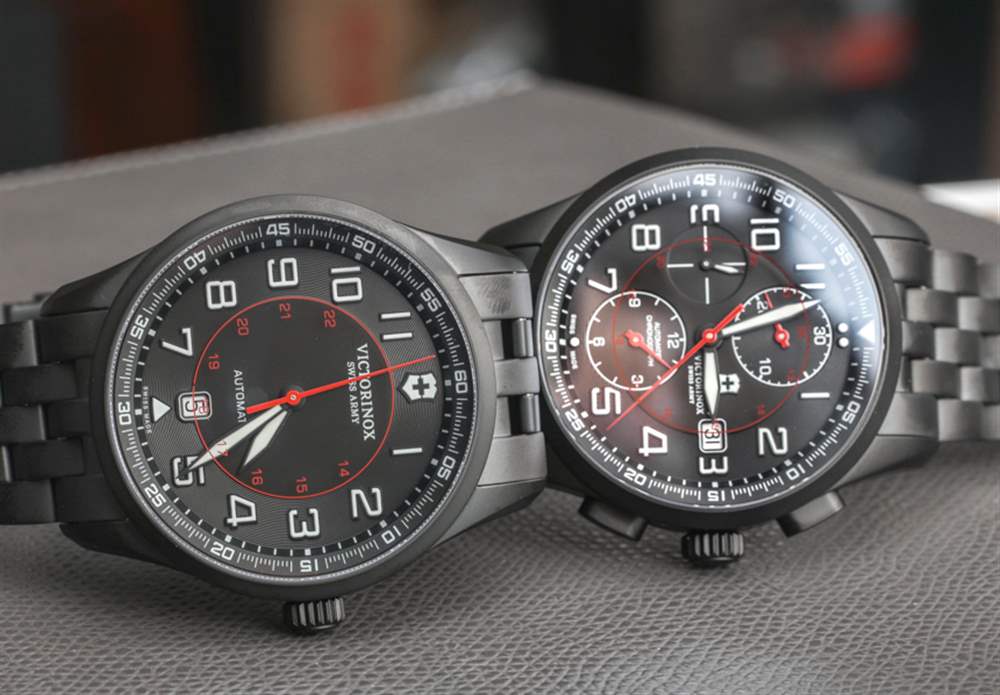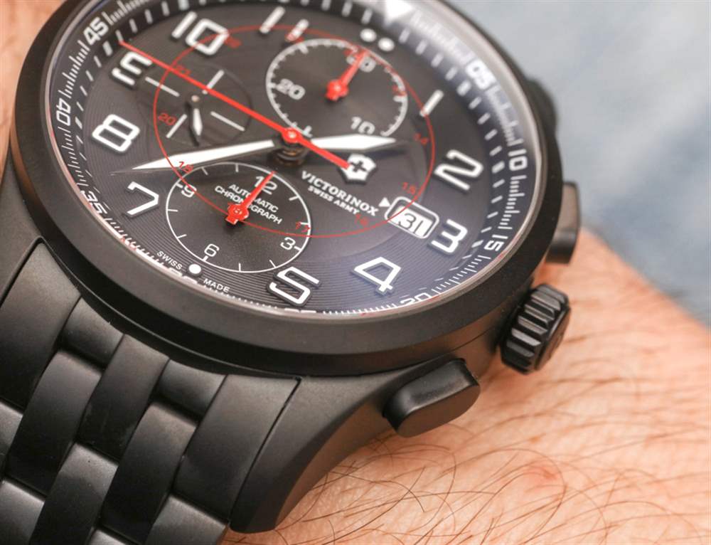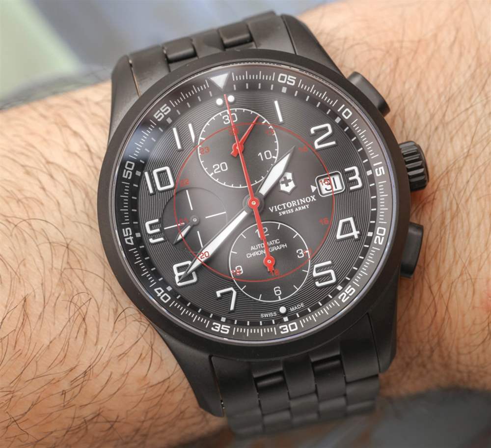 如果您的口味更簡單或預算更緊,我還想指出,Victorinox Swiss Army 在 Airboss Mechanical Black Edition 中生產這款手表的三指針版本(此處為aBlogtoWatch 評論)表帶或相同的啞光黑色鋼手鏈,售價 1,095 美元。兩種型號都有 42 毫米寬的表殼,外觀和設計相似——只有一款沒有計時碼表。因此,根據您的口味和需求,兩者都是一個有吸引力的選擇。