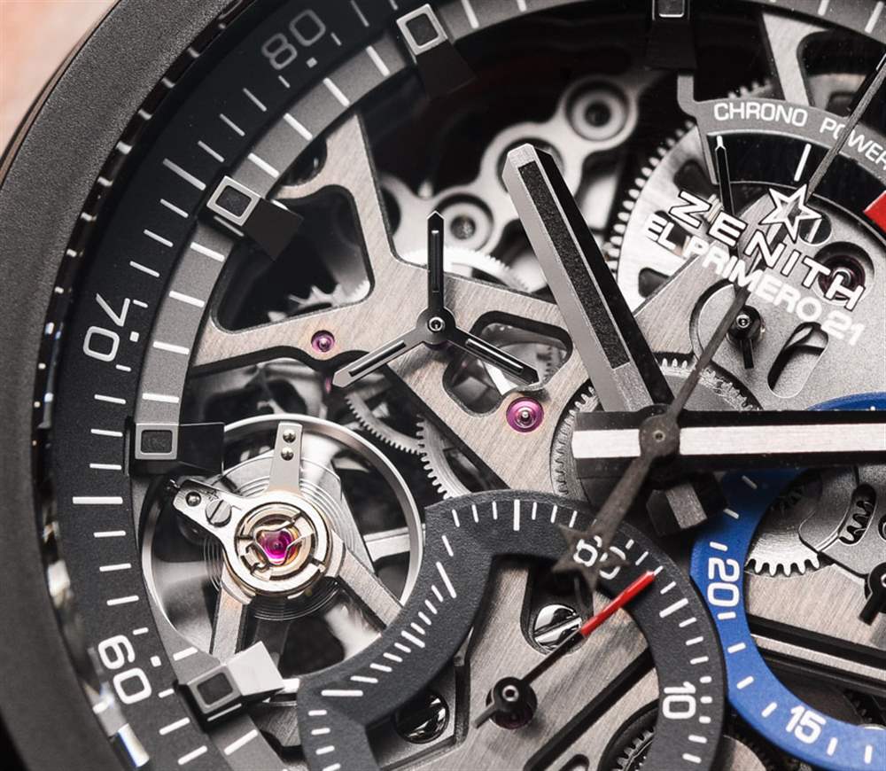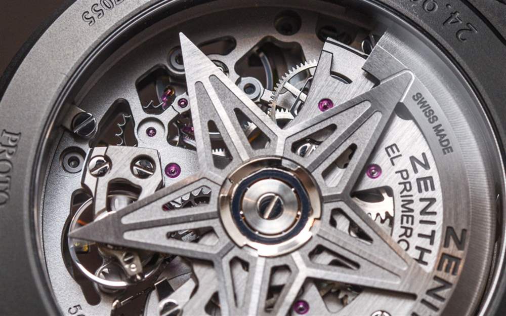當然,除了 El Primero 21 中的機芯結構之外,還有一件事是新的,那就是在專用于計時復雜功能的獨特調節機構中用于平衡輪的特殊碳材料(咳咳,碳基碳納米管材料)運動。