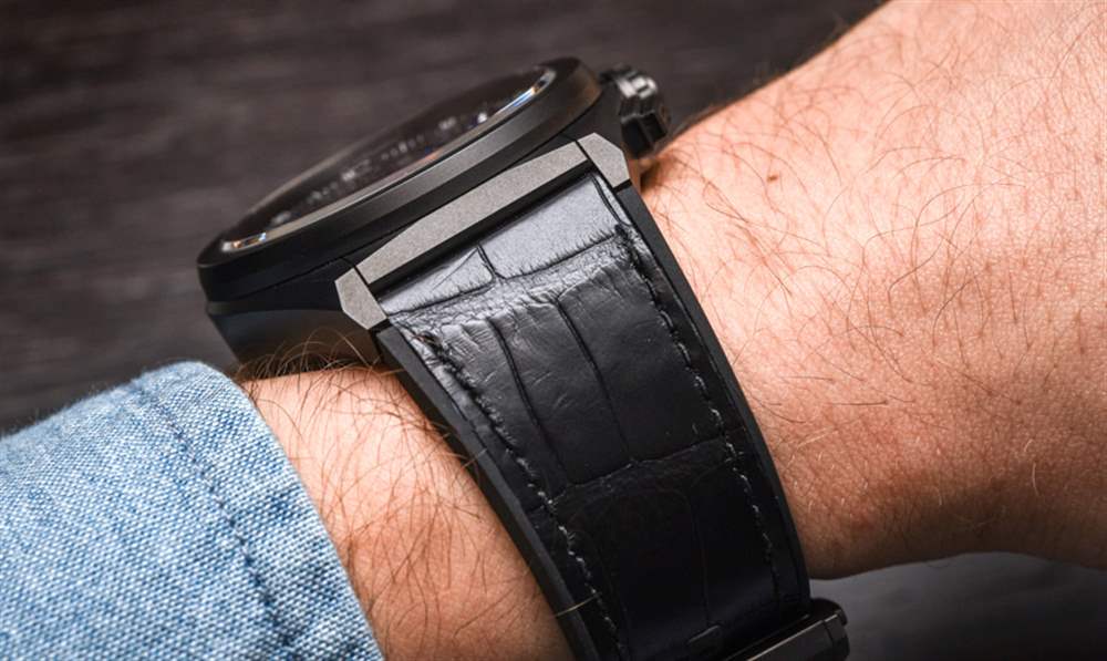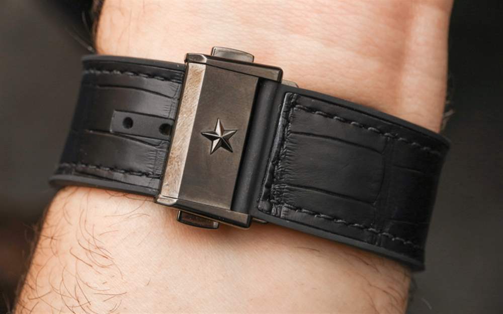 然而,我要說的是,橡膠表帶帶有黑色鱷魚皮外條,完全不屬于宇舶的劇本——你也可以在豪雅表中找到。這確實不是一件壞事,但值得一提。為什么是這些帶子?好吧,它們提供橡膠的舒適感和精致的天然皮膚的外觀吸引力。此外,它們有助于皮革的使用壽命更長。