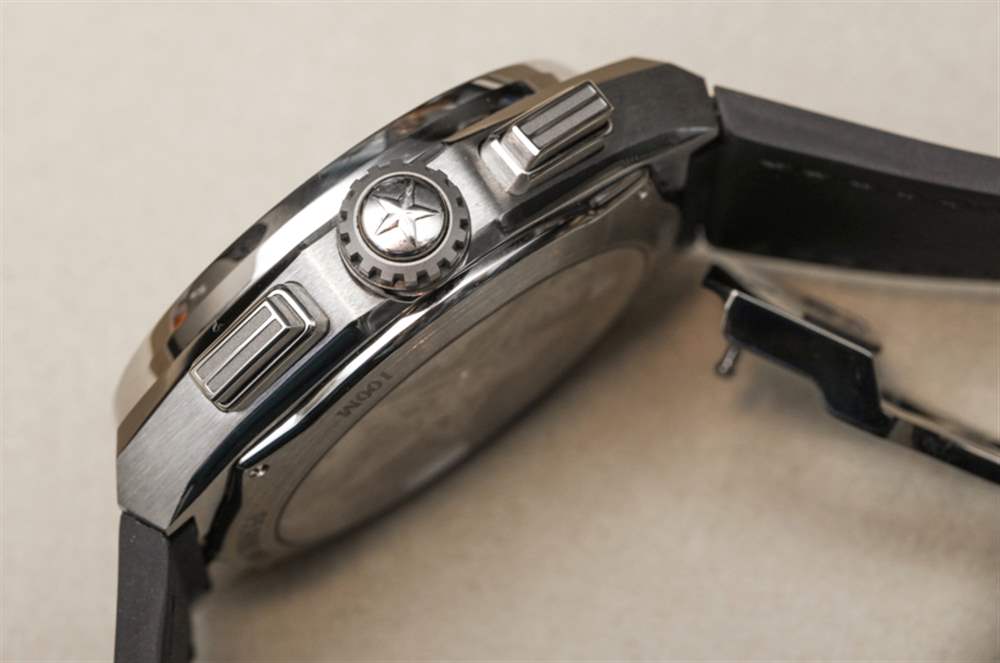 為時間和計時碼表設置兩個調節系統的解決方案是有意義的。使用 1/100秒計時碼表很有趣,因為主計時碼表秒針每秒圍繞表盤轉一圈。通過這種方式,它類似于 Zenith Striking 10 th,但在運動上更加精確。當然,我確實想知道機芯在磨損方面的表現如何,因為所有這些所需的力遠遠超出了大多數傳統機械機芯需要承受的力。