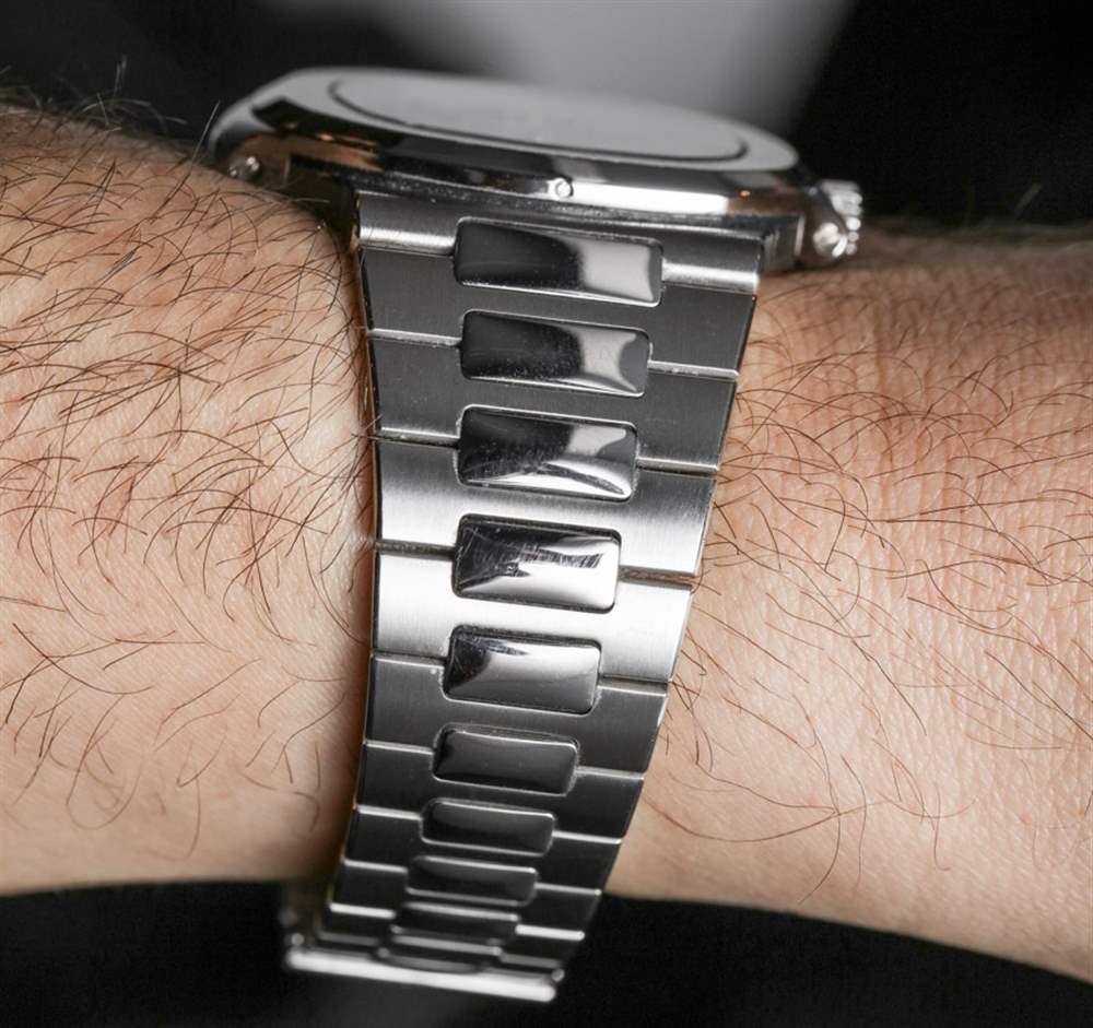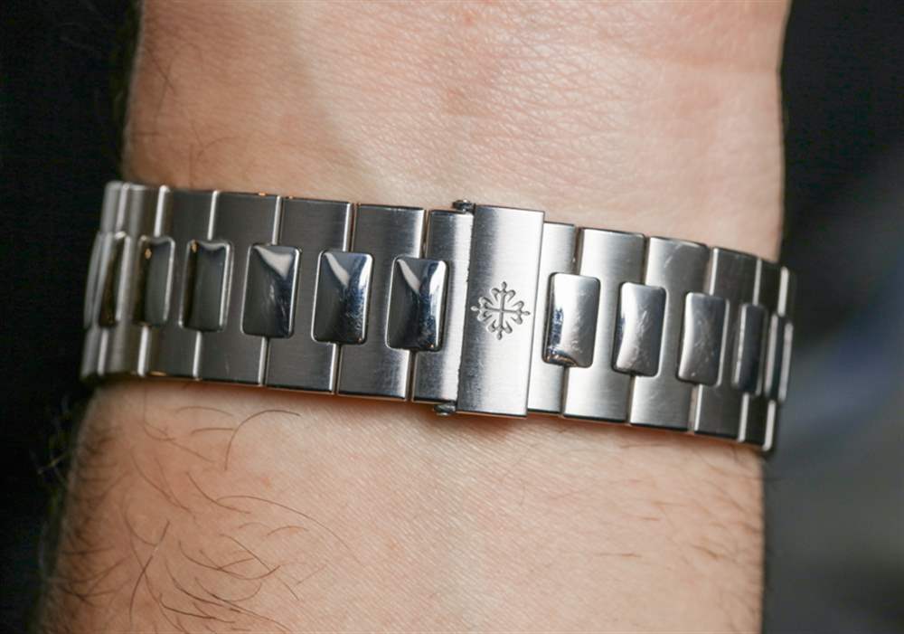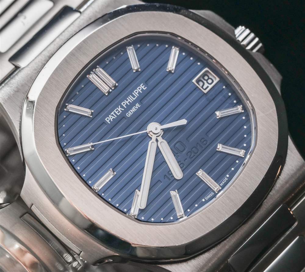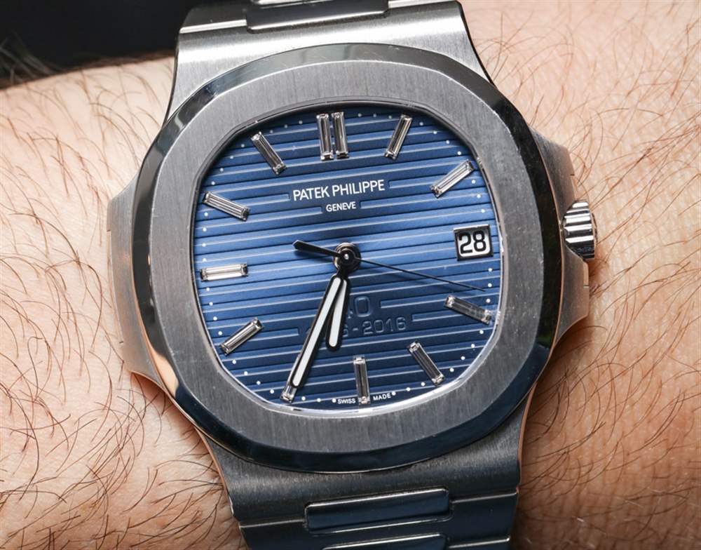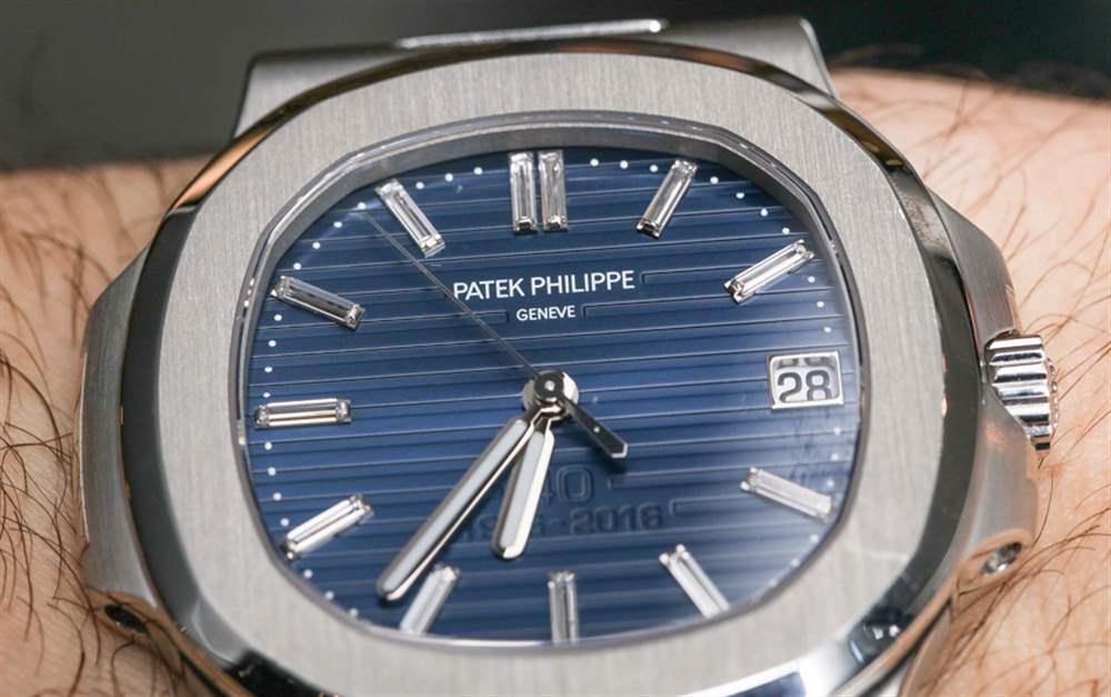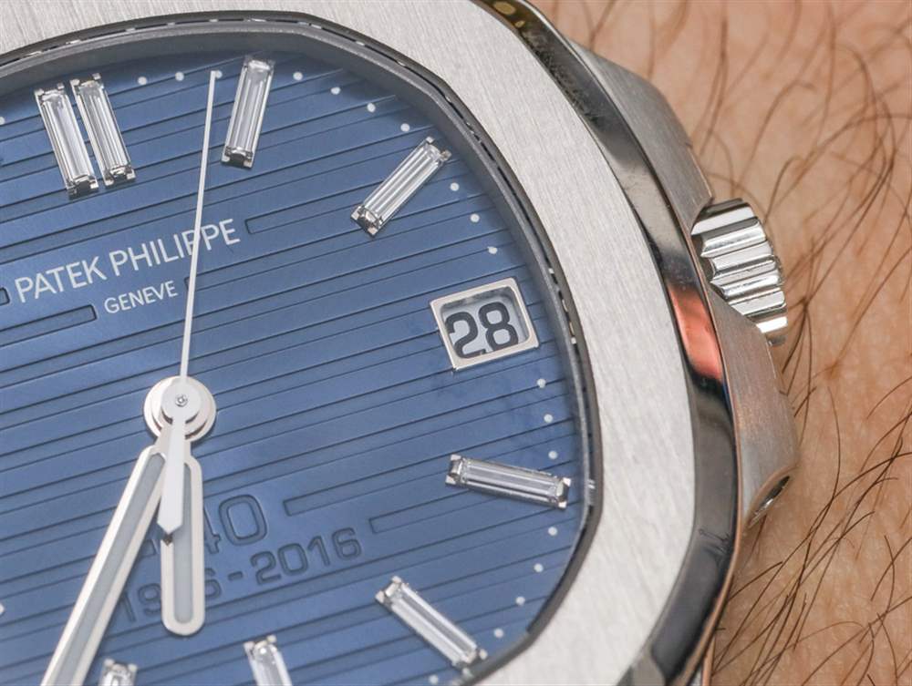 我想談談影響限量版 5711/1P 百達翡麗 Nautilus 推出的一些非常重要的事情。百達翡麗分享的這款手表的圖片使它看起來好像表盤上的“40 1976-2016”文字很大而且很突兀。事實上,在這些圖像中它看起來非常丑陋。然而,在現實中,這個文本非常微妙,在大多數光照條件下更難看到。大部分情況下,在佩戴百達翡麗鸚鵡螺鉑金 40 周年紀念腕表時,并不能真正看到 40 周年紀念文字。這一點非常重要,因為我認為很多人都認為這是一個非常大的設計錯誤——正如它出現在百達翡麗自己的營銷形象中一樣。教訓 – 再一次 – 是我們應該始終對手表進行最終保留,直到我們親眼看到它。