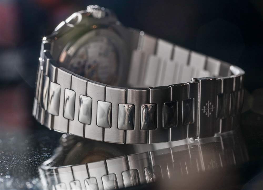百達翡麗 Nautilus 5711/1P 也比大多數 Nautilus 手表大,寬度為 44.05 毫米。它不會穿得太大,因為這種尺寸的很大一部分歸功于大側面 – 這是原始 Gerald Genta 設計的標志。逐漸變細的鉑金手鏈既貼合手腕又非常舒適。有了這個尺寸和整體可愛的美感,這可能是我穿過的最喜歡的 Nautilus ——但當然,你需要忍受鉑金的價格。在 120 米處,與其他 Nautilus 型號相比,防水性能保持不變。