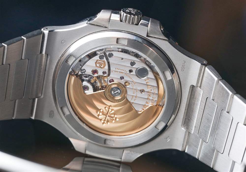 5711 Patek Philippe Nautilus 內部是迷人的內部制造的 324 SC 自動機芯。憑借大量百達翡麗的內部技術,它是一款功能強大且可靠的日常佩戴。該機芯由 213 個零件組成,運行頻率為 4Hz(28,800bph),配備百達翡麗 Spiromax 擺輪,動力儲存約 40 小時。它也恰好是一個相當纖細的機芯,厚度僅為 3.3 毫米。功能包括帶秒的時間,當然還有日期。