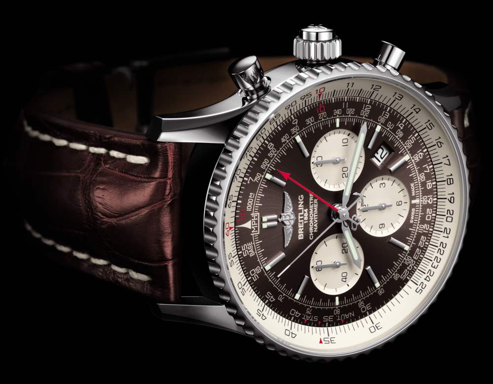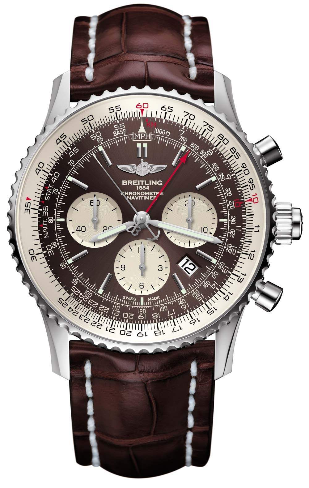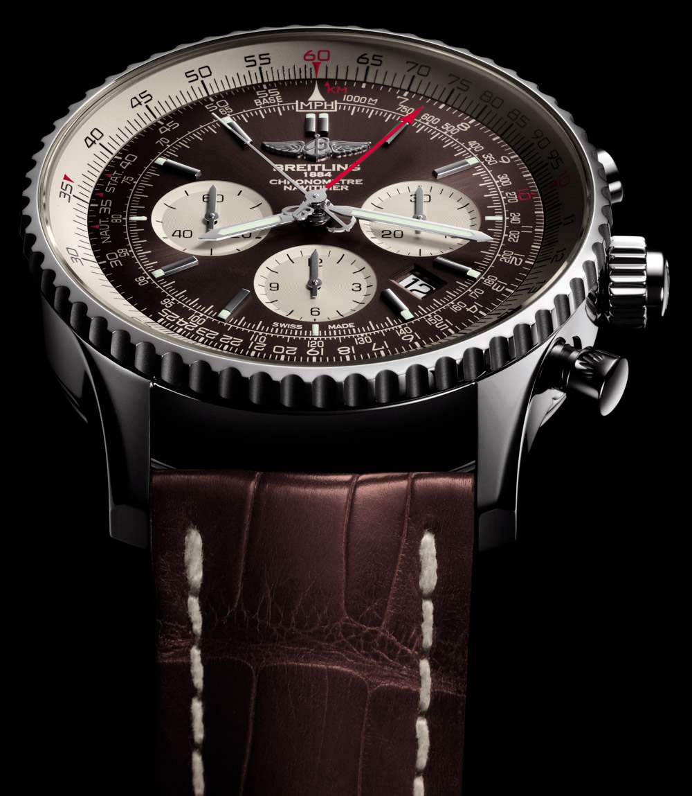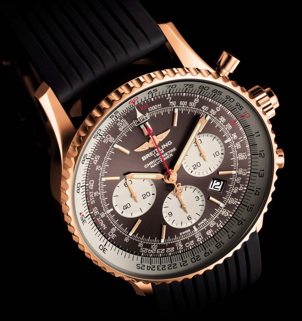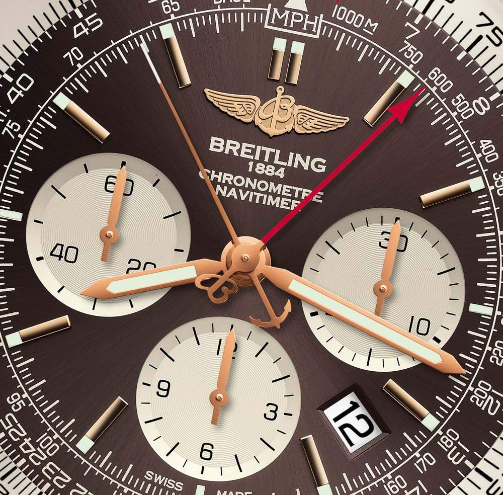 為了推出 B03 機(jī)芯,百年靈選擇了 45 毫米寬的航空計時腕表,棕色表盤采用兩種表殼材料:精鋼和 18 克拉紅金作為限量版。棕色表盤(百年靈實際上稱它們?yōu)椤鞍湍民R青銅”)與帶襯墊的棕色鱷魚皮表帶相匹配。雖然百年靈也將在皮革或橡膠表帶上提供 Navitimer Rattrapante。