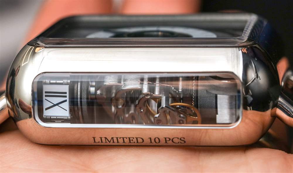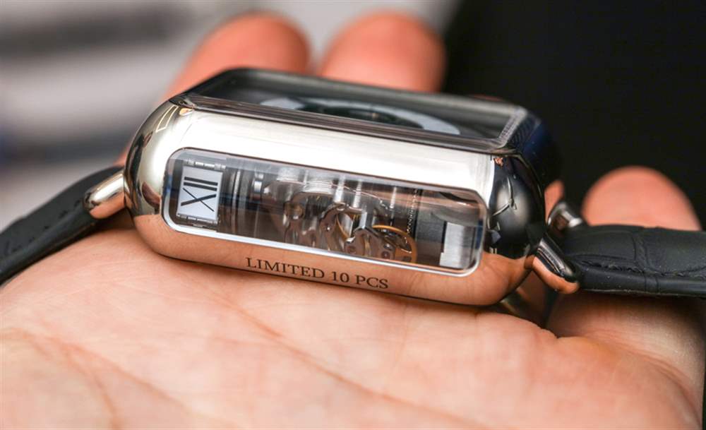所以,雖然我個人不是 H. Moser & Cie 的 Apple Watch 復制品的粉絲,但我確實喜歡這種表殼概念如何很好地容納 HL2.0 機芯。表殼的柔軟邊緣有助于減少其視覺質量,側面藍寶石水晶窗口可以很好地觀察機芯。任何熟悉 Apple Watch 比例的人都會認出類似的設計線索、表耳和整體形狀,但這里有足夠的不同之處,這是對 H. Moser & Cie 正在尋找的 Apple Watch 更“合適”的答案為了。易讀性也不是那么糟糕,而你在營銷圖片中看不到的,當你看到手表的人時,你可以看到機芯上方的煙熏藍寶石水晶元素如何為機芯上的機制提供一個很好的視角里面,