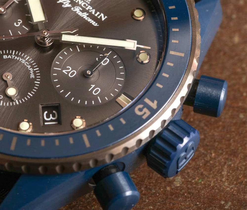 這一切聽起來都很棒,但不幸的是,我無法親自測試手表,因為我要玩的模型是“阻塞”的(機芯停止工作以保持手)原型。因此,我仍然渴望佩戴其中一款功能正常的腕表,并充分體驗寶珀五十噚深海飛返計時碼表 Ocean Commitment II。