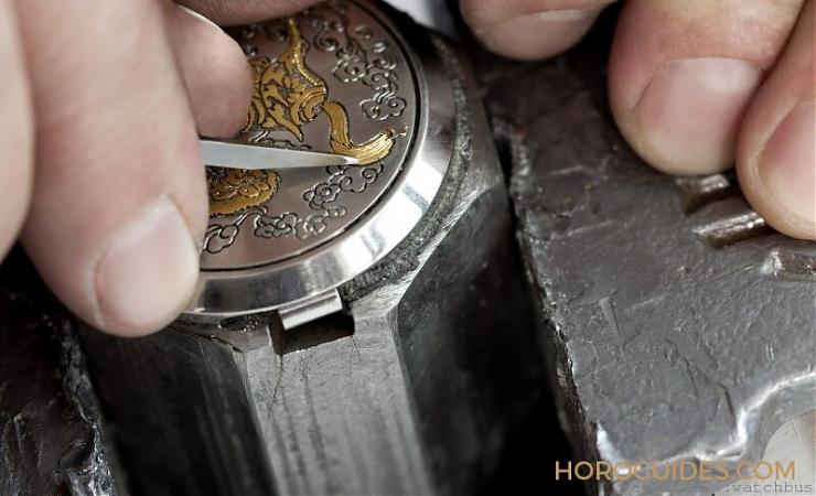 沛納海的表款向來就是給人相當俐落、簡約、軍事風,而在生肖系列卻可以看到沛納海精雕細琢的義式工藝。在沛納海生肖表所采用的是義大利古老雕刻技法,首先功夫老練的雕刻師使用名為“sparsello”的特別工具在表蓋上雕刻出農歷生肖圖形凹槽,再逐步將金絲嵌入拷捶、點綴精工細雕的生肖圖紋。
