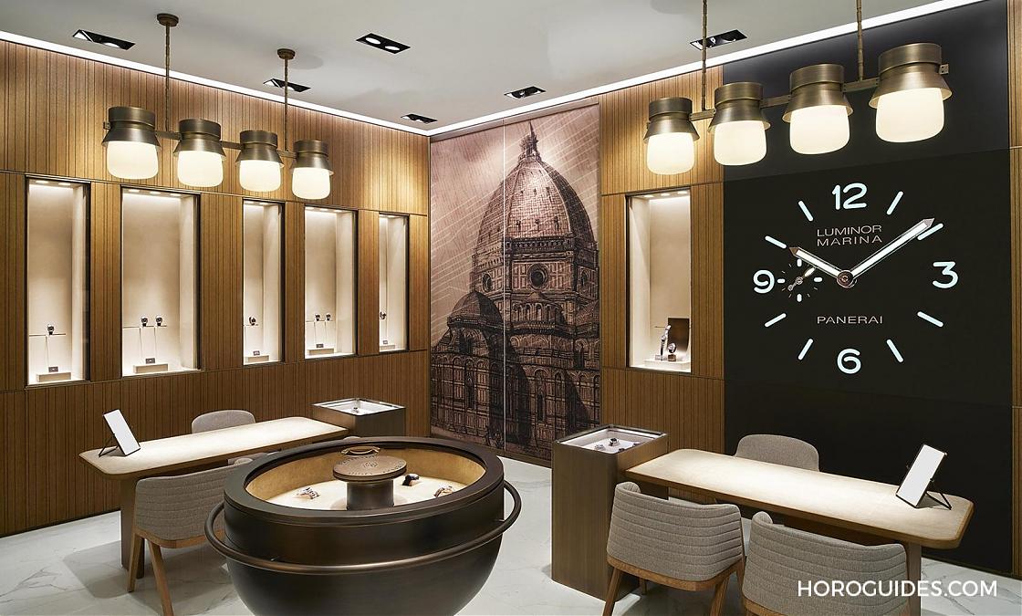 除此之外,臺中專賣店特別采用橡木、磨砂深色青銅以及波浪形透明玻璃等元素,連店內的銅質吊燈與搭配木紋細節裝飾的銷售柜臺都強調出沛納海與海洋世界以及帆船運動的聯結,另外在專賣店內也可以看到一個沛納海表盤的大壁鐘。