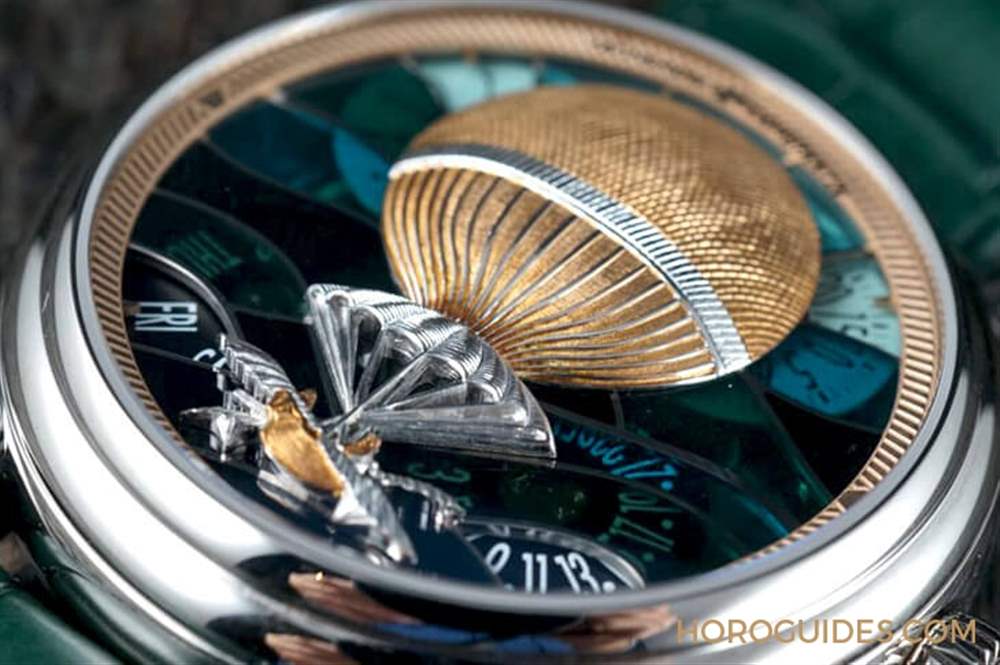 江詩丹頓的Métiers d’Art藝術大師系列,其工藝之精、主題背景之壯闊,堪稱是表界眾多工藝表中真正可以被稱得上是藝術作品的系列。2018年的新作品以金雕為重點工藝,結合琺瑯彩繪,推出Les Aérostiers熱氣球腕表,系列五款腕表各限量5只。