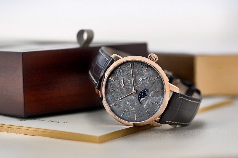 Frédérique Constant在這次的「Only Watch 2017」中維持著品牌一貫腕表圓渾、風格平實的特色,配上FC-755自動上鏈機芯,擁有萬年歷功能。而表盤上萬年歷的小表盤采用平面式設計,令表盤看上去更為簡單。但重點不在這,因為這都可以在品牌旗下腕表中看到。既然是世上獨一無二的腕表,Frédérique Constant便把隕石材質打造表盤,以呼應「Only」這個主題。