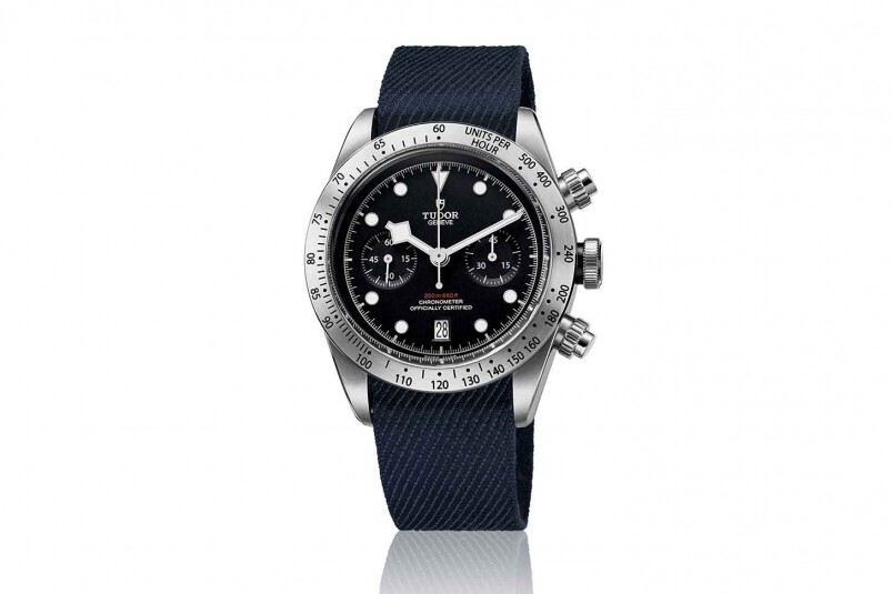 而無論是購買鋼帶款抑或是皮帶款式,Tudor都會為你多配一條表帶,Black Bay Chrono配搭的是深藍色牛仔布風提花織紋表帶,帶來復古感覺以外的味道,提供更悠閑型格的味道,一枚表有多種配襯方法,令你好像有多一枚腕表的新鮮感。就算是一條織紋表帶也不要少看,因為這表帶是由TUDOR設計, 再委托法國圣艾提安(St-Etienne)地區一家擁有150年歷史的家族企業制作,采用十九世紀的提花織機編織而成,你在外面絕對不容易找到這種質素的織紋表帶。
