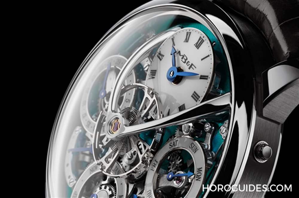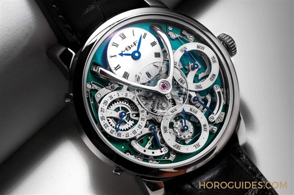 MB&F與愛爾蘭獨立制表師Stephen McDonnell合作的Legacy Machine Perpetual顛覆萬年歷,2015年首度發表玫瑰金與鉑金版本,隨后推出兩款白金材質,2018年再推出限量50只的鈦金屬表款。專利申請中的萬年歷機制,不僅創造懸浮飛船般的科技外觀,而且還有更有利于操作的機制設計。