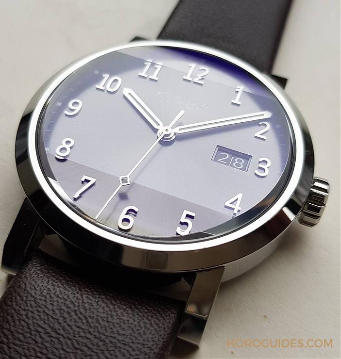 什么是好的手表,其中之一就是品質要超越價格?,F在的品牌幾乎都是顛倒的,訂價高,品質不及價錢(至少也應該要持平)。先不談外型設計,這真是見仁見智。這款Omnium每個細節都很到位,表殼有棱有角,非常扎實與精致,水晶玻璃為鉆石切割的斜角鏡面(現行表款非常罕見)。這款灰色面盤我非常喜歡,銀色阿拉伯字立體時標與指針,再搭上兩位數字組成的大日期,識讀性極佳。