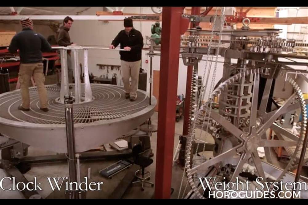 時鐘的主要動力來源有二,一是上述的溫差,二是訪客造訪時推動時鐘絞盤的上鏈動作(人力畢竟是最直接的動力輸出,既然訪客自己送上門來,一定要善加利用是吧)。由于是建在山里,因此訪客必須要步行爬升總共約150英呎、通過齒輪間、動力室,才會到達(dá)顯示天文時間、恒星與行星速度的主要房間,不過平時為了節(jié)能,時鐘并不會顯示當(dāng)下時間,除非訪客轉(zhuǎn)動發(fā)條提供動力(是的,想看時間總是要有點貢獻(xiàn)),達(dá)8英呎大的顯示盤才會推動指針。