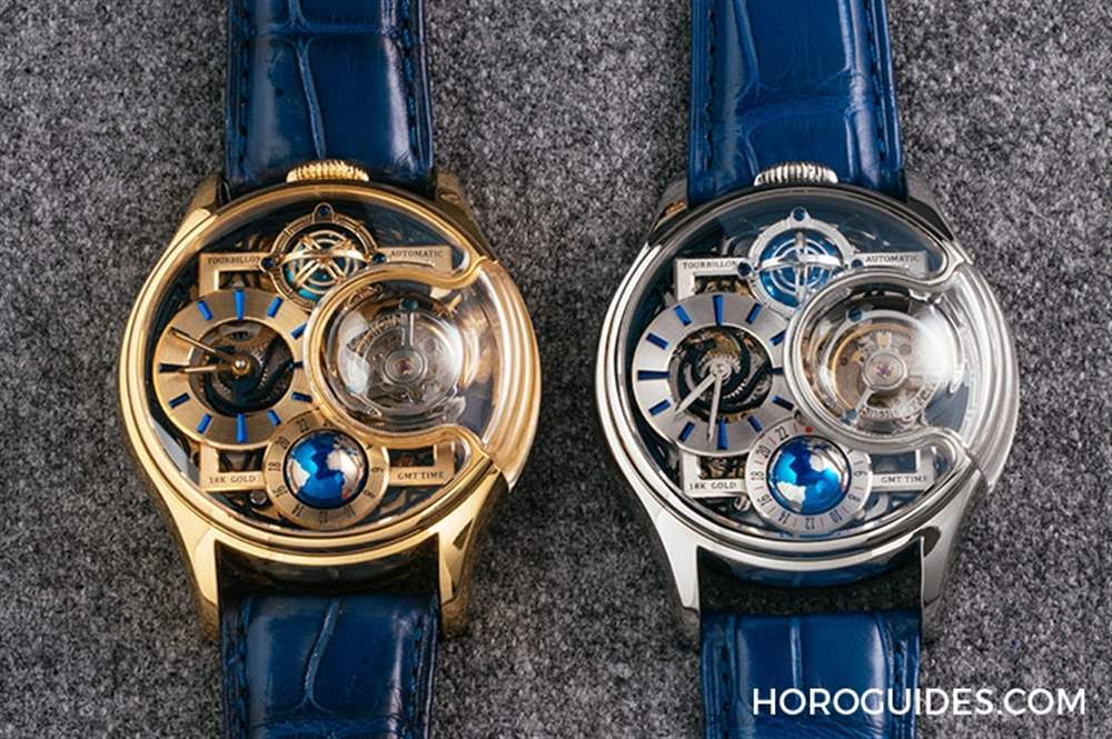 表款有18K金與18K白金鍍層兩種選擇,皆為不銹鋼材質表殼,表徑約為43mm。