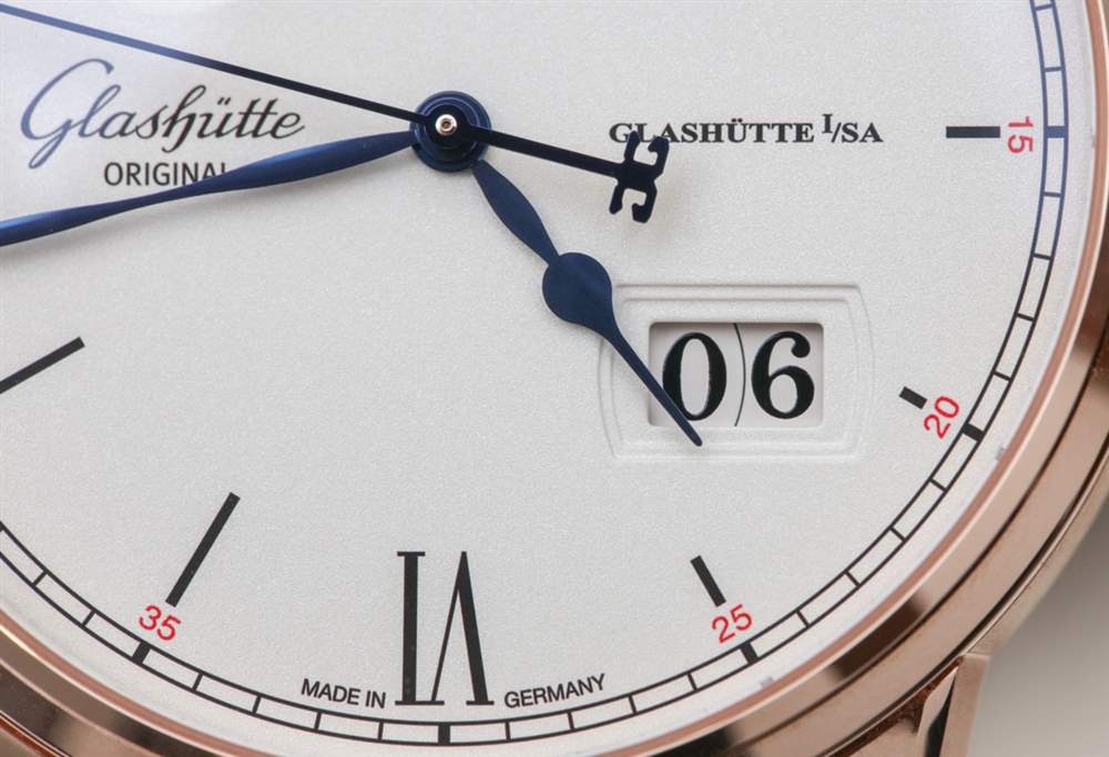 其他受歡迎的設(shè)計元素是對表盤設(shè)計的微調(diào),略顯精致,非常帥氣。藍鋼指針尺寸完美,一切清晰易讀。部分原因是格拉蘇蒂原創(chuàng)在幾年前收購了他們的 Pforzheim 表盤供應(yīng)商,并嚴格控制表盤生產(chǎn)(包括日期輪等),以最大限度地提高表盤的美觀和易讀性。請注意紅金表款表盤上的紅色點綴,營造出漂亮、略帶運動感的個性。對我來說,這個元素提醒我,這些不僅僅是漂亮的手表,也是德國手表傳統(tǒng)中的工具。