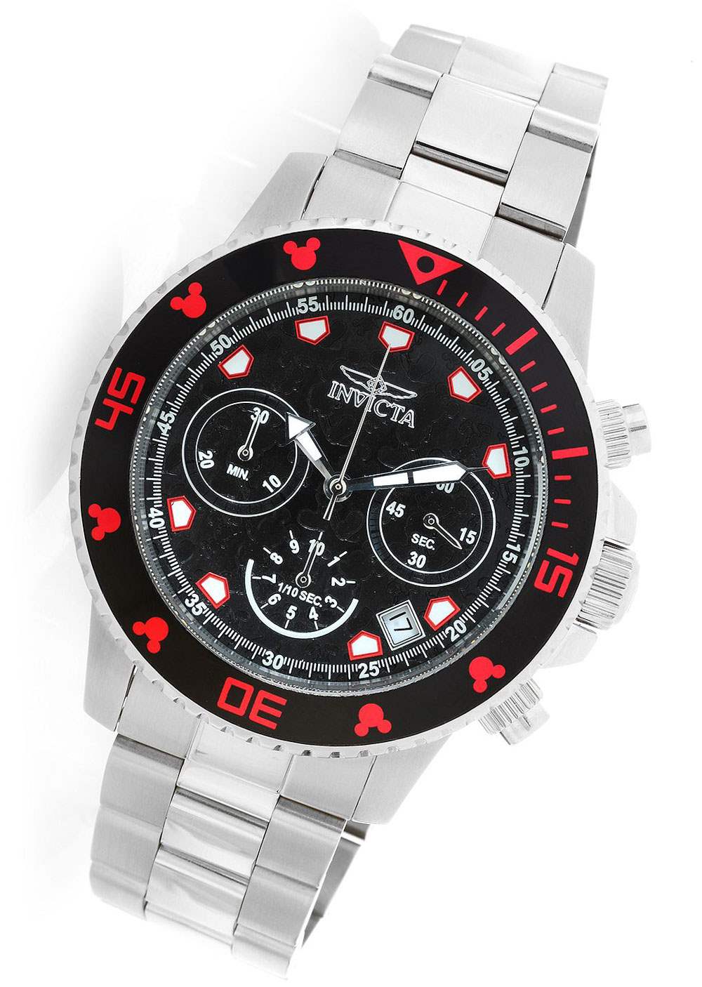 首先,在大多數(shù)情況下,Invicta Disney 手表是為成年人準備的。是的,我們可以爭論它們的相對復(fù)雜性,但歸根結(jié)底,這些不是兒童手表(不僅僅是因為其中一半是 50 毫米寬)。基于他們的 Rolex Submariner-inspired Pro Diver 或 Rolex Daytona-inspired Speedway,設(shè)計中的米老鼠集成實際上已經(jīng)相當成熟。看看 Invicta Disney 45mm Pro Diver Limited Edition Quartz Chronograph 表圈上隱蔽的米老鼠頭集成。盡管核心手表設(shè)計大量借鑒了勞力士和精工,但迪斯尼元素并不算太糟糕。