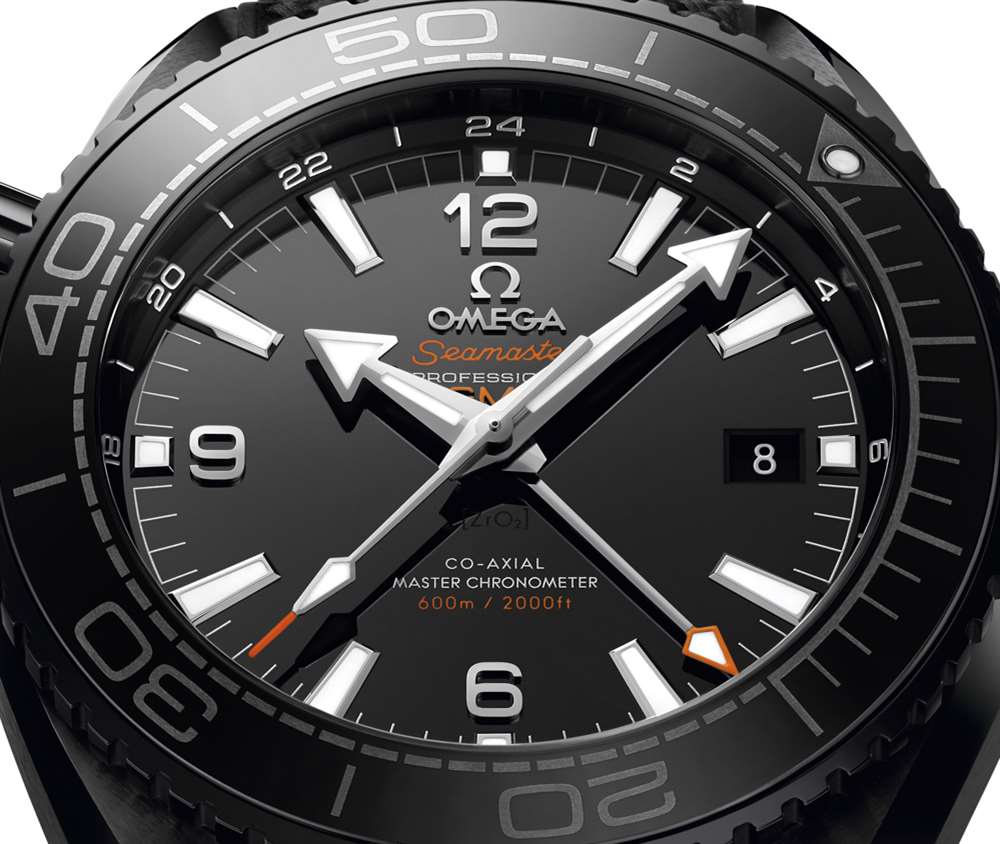 您還會注意到一些重要的撥號差異。43 毫米寬的 Planet Ocean GMT 具有 24 小時標(biāo)記的旋轉(zhuǎn)表圈,而歐米茄海馬系列 Planet Ocean GMT Deep Black 具有傳統(tǒng)的 60 分鐘潛水表圈。歐米茄在表盤本身設(shè)計了一個 24 小時刻度 – 使其成為許多用戶的理想混合解決方案。黑色陶瓷表盤采用2016年新款阿拉伯?dāng)?shù)字,指針為18k白金或18k Sedna金(帶SuperLumiNova夜光材料)。