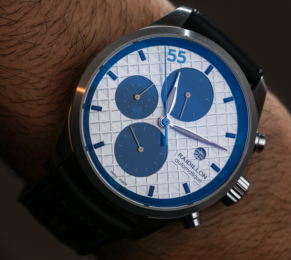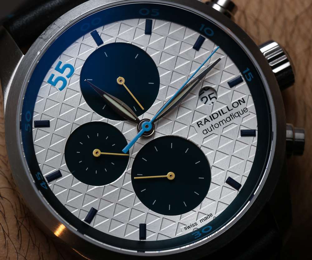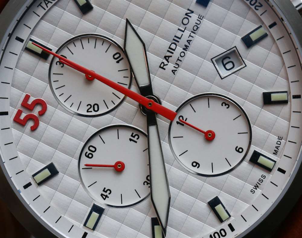 表盤設計質量從非常好到對我的口味不是特別有吸引力。Raidillon 既提供非常經典的表盤,也提供一些更具藝術氣息的表盤。例如,查看我們在 aBlogtoWatch 上介紹的 Raidillon Maya 計時碼表.?我注意到的另一件事是,雖然有些表盤看起來很棒,但另一些則不然。這或多或少取決于 Raidillon 為特定型號選擇的特定顏色、飾面和組合。根據我親自查看許多 Raidillon Chronograph 型號的能力,我可以說,在購買之前親自查看其中一些手表可能是個好主意,以確保表盤看起來和在線營銷中一樣好圖片。我認為,這里的兩款手表(或多或少代表了設計的經典和現代一面)都具有出色的易讀性。然而,一個問題是其中一款手表的圓形日期窗口感覺有點太小而且看起來不那么優雅。