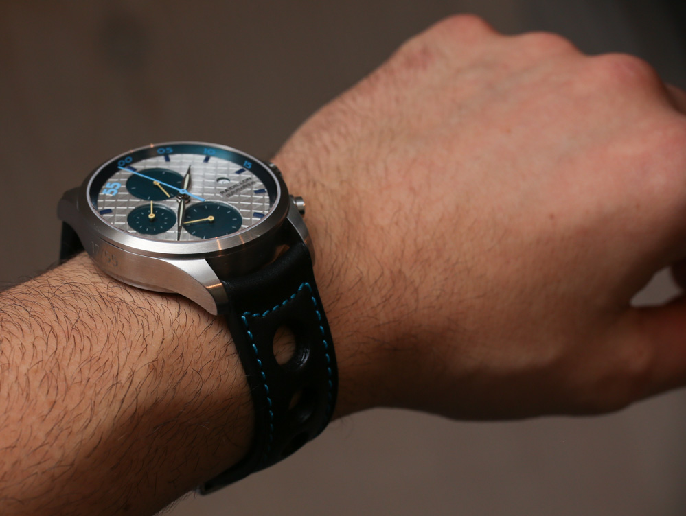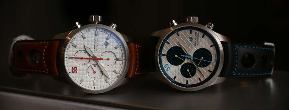 這兩款手表分別是帶有巴黎釘紋的奶油色表盤 Raidillon 計時碼表 42-C10-148 和黑色、藍色和銀色 Raidillon 計時碼表 42-C10-159。它們基本上都是同一只手表,但您可以體會到使用不同的表盤和表帶可以實現多么不同的外觀。Raidillon 還有其他型號以及三針機芯,但在我看來,該品牌現在的重點是他們可以用這些計時碼表做的有趣的事情。