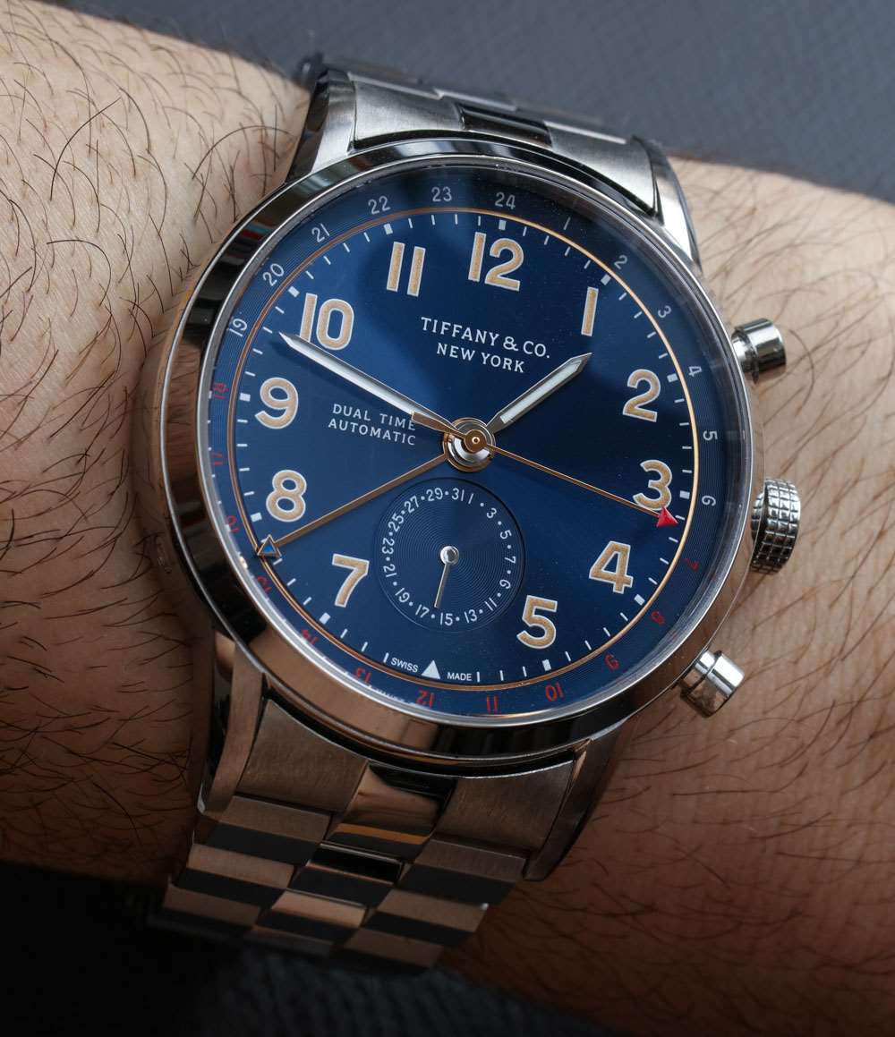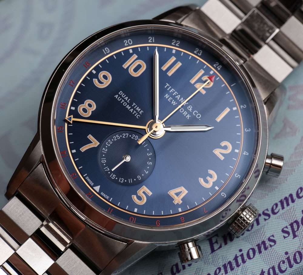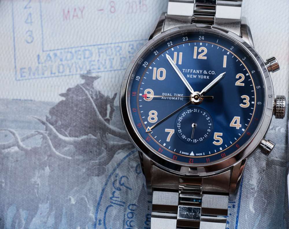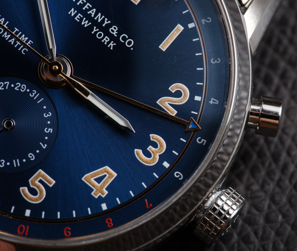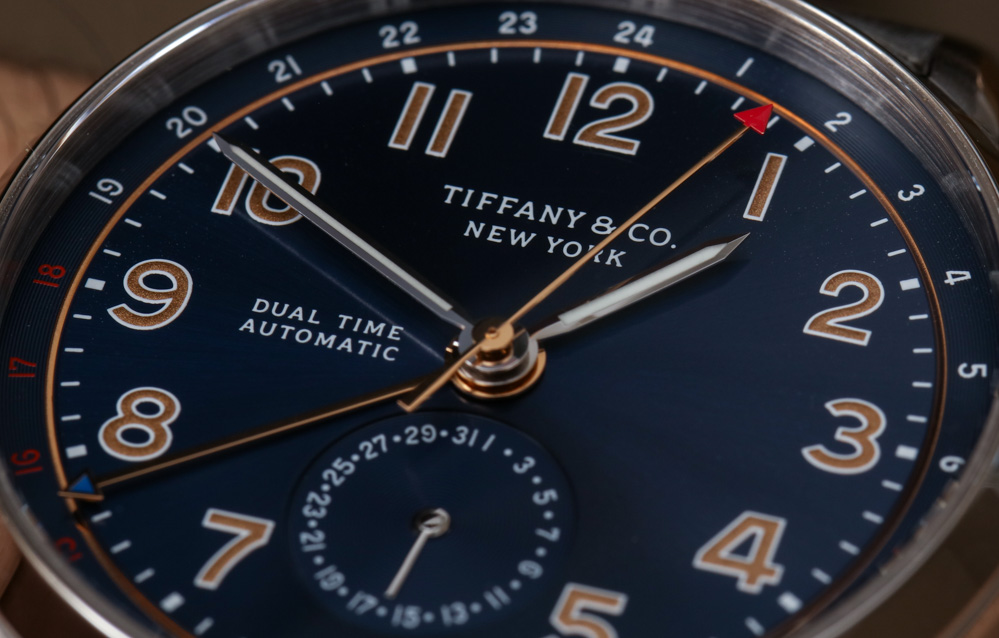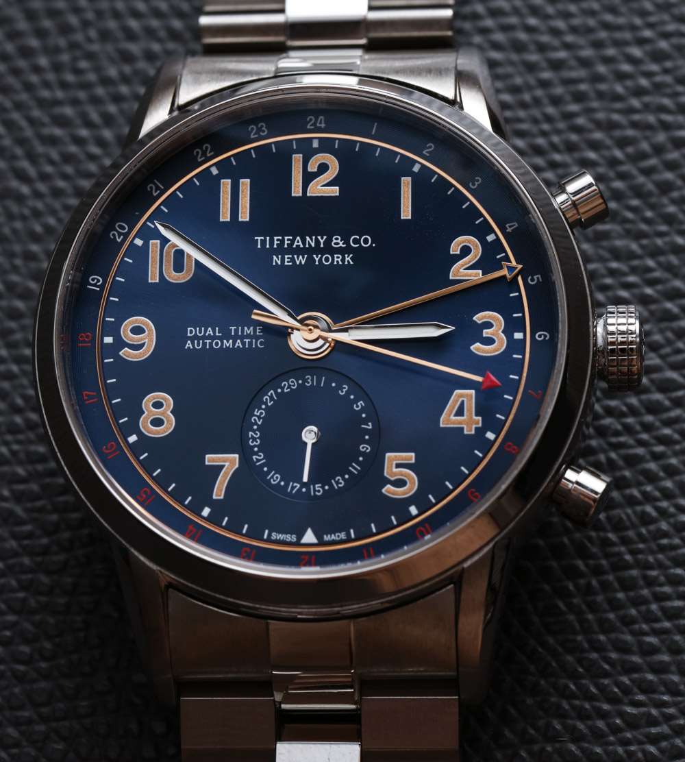 表盤上一個古怪的設計決定是如何使用“雙時間”和“自動”標簽。蒂芙尼 (Tiffany & Co.) 將表盤左側的字樣堆疊在一起,使表盤看起來有點不對稱。我想知道他們為什么不只采用這兩個術語(視覺尺寸大致相同),而是將一個放在表盤的左側,一個放在右側。也許他們對此進行了試驗,但看起來效果不是最好,但它似乎可以增強視覺對稱性。廣告留言廣告信息結束