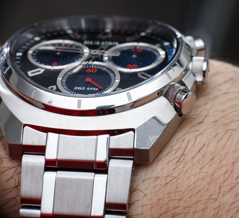 Bulova 所做的有趣的事情是從一開始就發布了外觀非常現代和更“保守”的 Bulova CURV 手表。正如我所提到的,“98A16”型號是最現代的,然后是外觀更經典的“正裝”型號,在 45 毫米寬的精鋼表殼(有些是黃色或玫瑰色)的表帶或表鏈上有五個版本金色調)。這些傳統陽剛但有些正式的 Bulova CURV 手表采用 45 毫米寬(9.7 毫米厚)表殼,參考型號為 97A124(699 美元)玫瑰金色調配鱷魚紋棕色皮革表帶,98A186(750 美元)精鋼表鏈搭配黑色表盤, 98A159(799 美元)雙色精鋼和黃金手鏈,98A160(799 美元)) 的雙色鋼和玫瑰金色表鏈,以及 97A125(799 美元)的全黃金表鏈表帶搭配表盤。