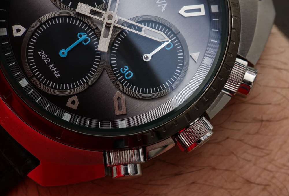 在談論更大的 CURV 手表系列之前,我想多討論一下機芯。這些都是 Bulova 的高頻石英機芯,運行頻率為 262kHz,精度高于“標準”石英機芯。這些機芯是從該品牌仍然非常酷的 Precisionist 機芯系列演變而來的。此前,這些機芯被冠以“UHF”(超高頻)的系列名稱,但尚不清楚今后寶路華是否會保持這一命名慣例。