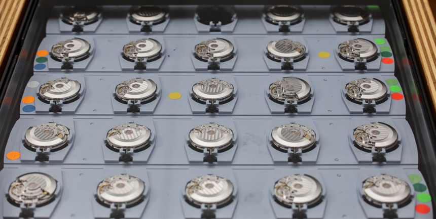 STP 聲稱它是第一家采用機(jī)器人自動化來協(xié)助人工生產(chǎn)手表機(jī)芯的公司。STP 受益于美國業(yè)主和瑞士運(yùn)營商,他們結(jié)合了他們最好的才能,以確保效率、質(zhì)量,當(dāng)然還有生產(chǎn)力。STP 沒有完成“骯臟工作”的衛(wèi)星中心,所有組裝都在設(shè)施內(nèi)進(jìn)行。盡管他們還沒有達(dá)到他們的生產(chǎn)目標(biāo)(這意味著他們想要提高平均日產(chǎn)量),但該公司仍然能夠每天生產(chǎn) 600 到 1,300 個手表機(jī)芯,具體取決于他們目前正在研究的具體機(jī)芯。