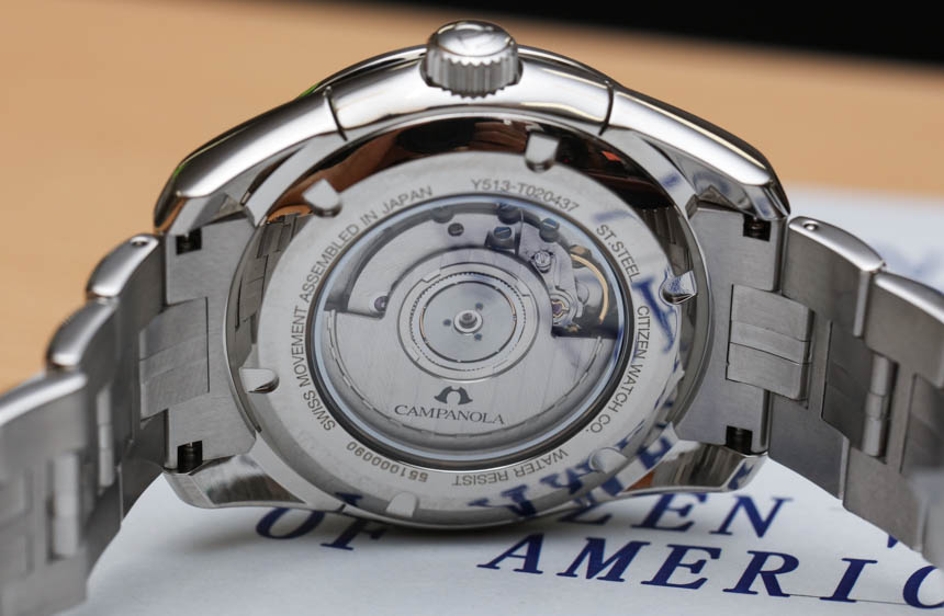 Citizen Campanola Mechanical 系列價格相對合理,使用的機械機芯與您在 Arnold & Son 手表或 La Joux-Perret 作為供應商的大多數(shù)其他公司中看到的機械機芯不同。該機芯雖然更簡單(盡管有有用的復雜功能)但很現(xiàn)代,被稱為口徑 Y513。Y513 自動上弦機芯以 4 赫茲 (28,800) 的頻率運行,并具有 42 小時的動力儲存。除時間外,機芯還具有停秒功能(拉出表冠時秒針停止)、12 點鐘下方的大日期指示器以及動力儲存指示器。您可以通過表殼的藍寶石水晶展示底蓋的背面查看機芯。我不得不承認,在“瑞士制造”機芯的轉子上看到日本高端品牌的標志對我來說有點獨特。
