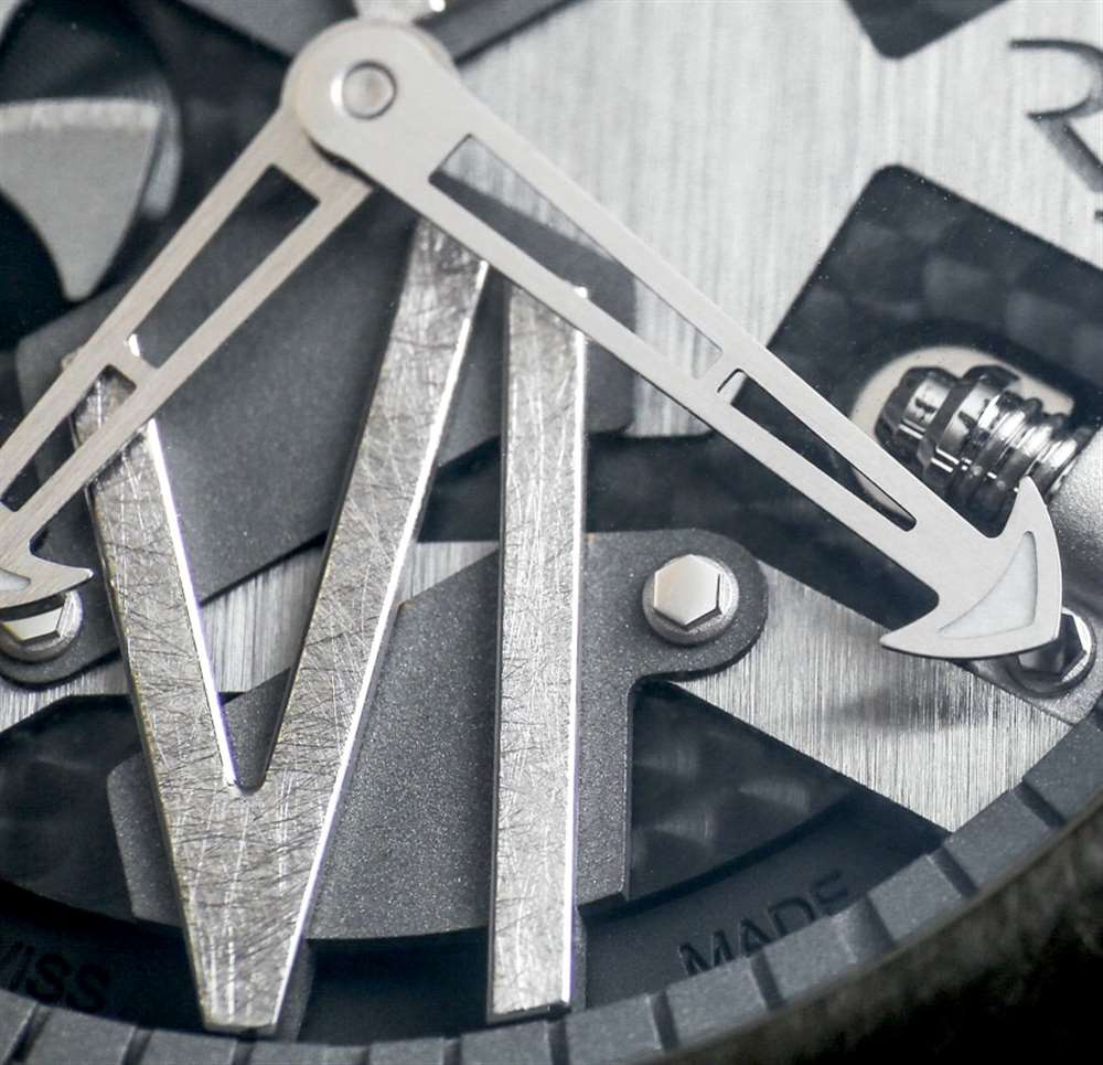 此外,盡管表盤相對瘋狂,但我發現 Romain Jerome Steampunk Auto 46 相當清晰。這是很難僅從圖像中收集到的東西。事實上,如果只判斷圖像,可以安全地假設手表(至少這個版本)大部分難以辨認,因為指針與表盤的大部分色調相同(是的,有一點點發光在提示上)。盡管如此,指針的啞光處理以及表圈周圍隱蔽的時針和分針使它成為一款不錯的計時器和腕間時尚單品。