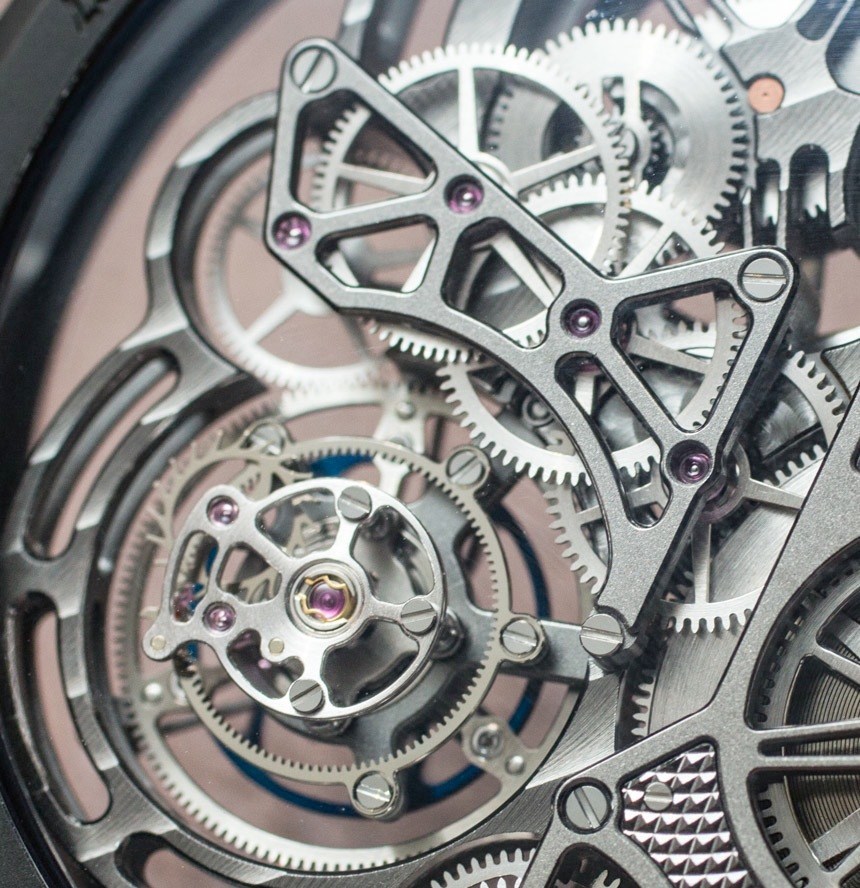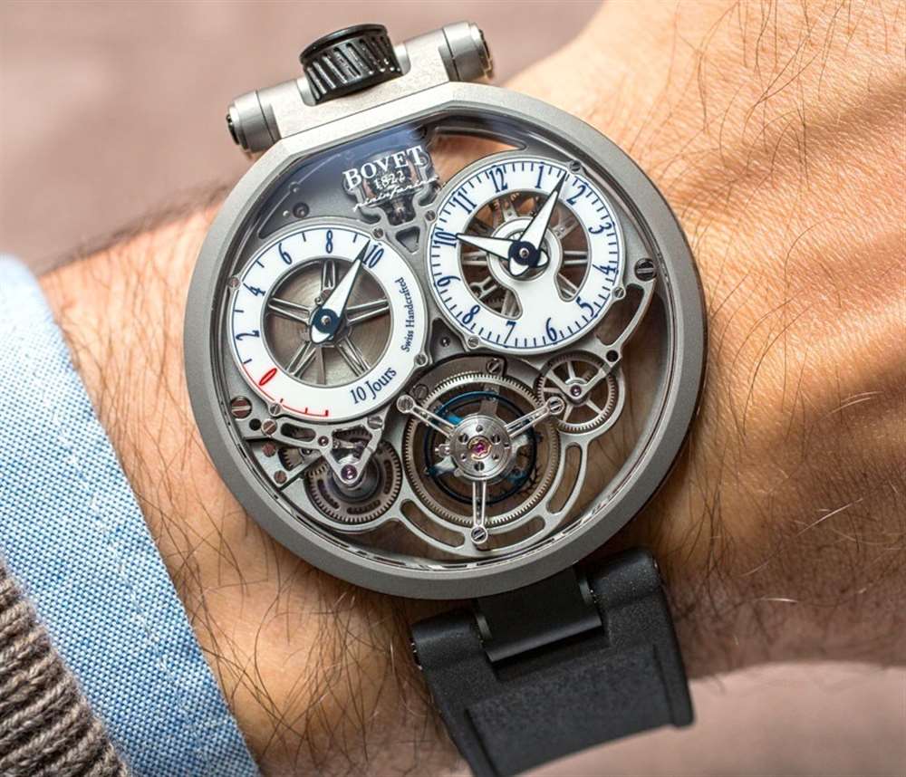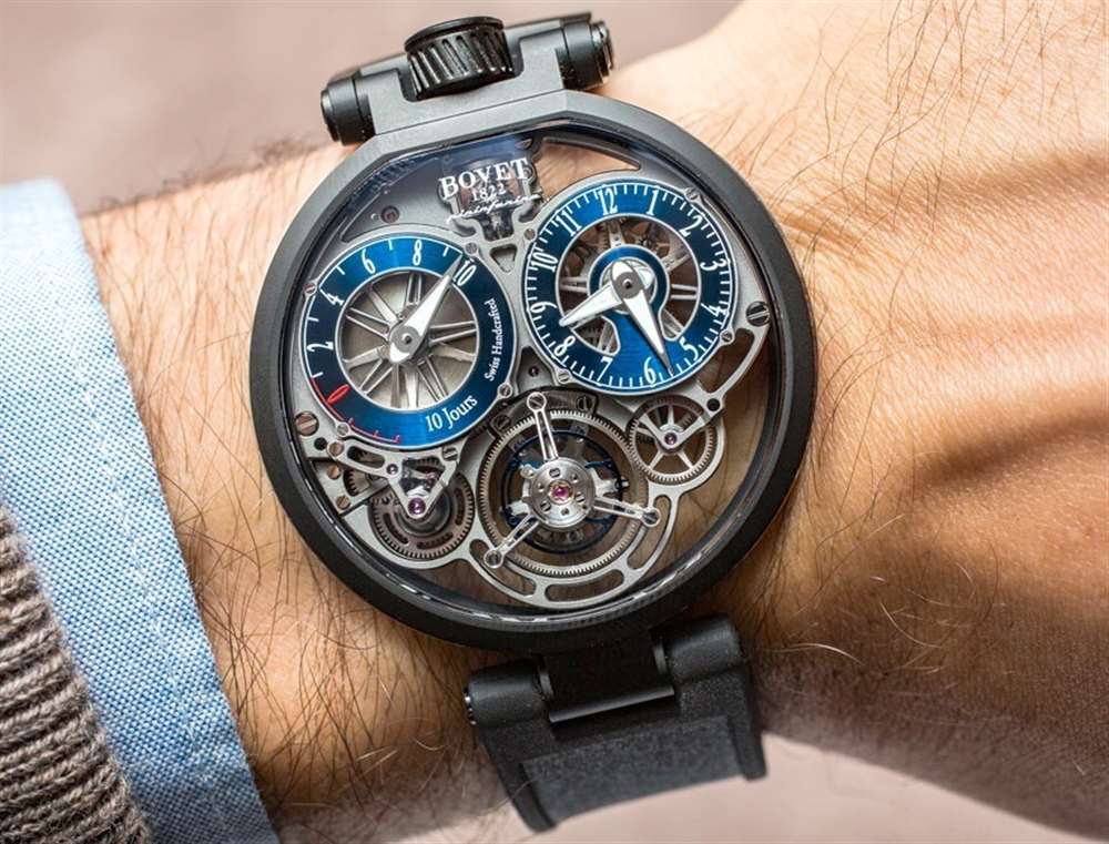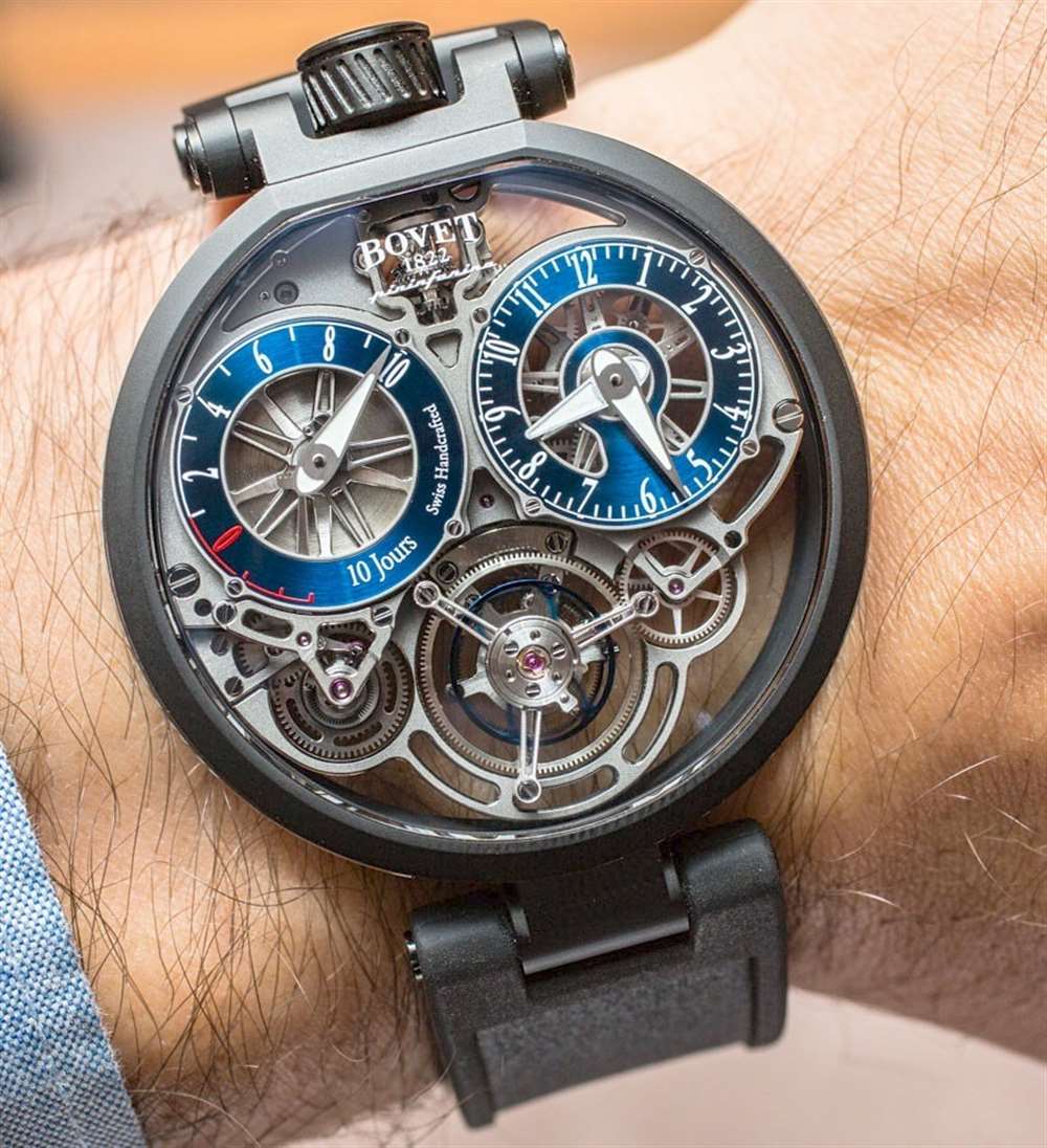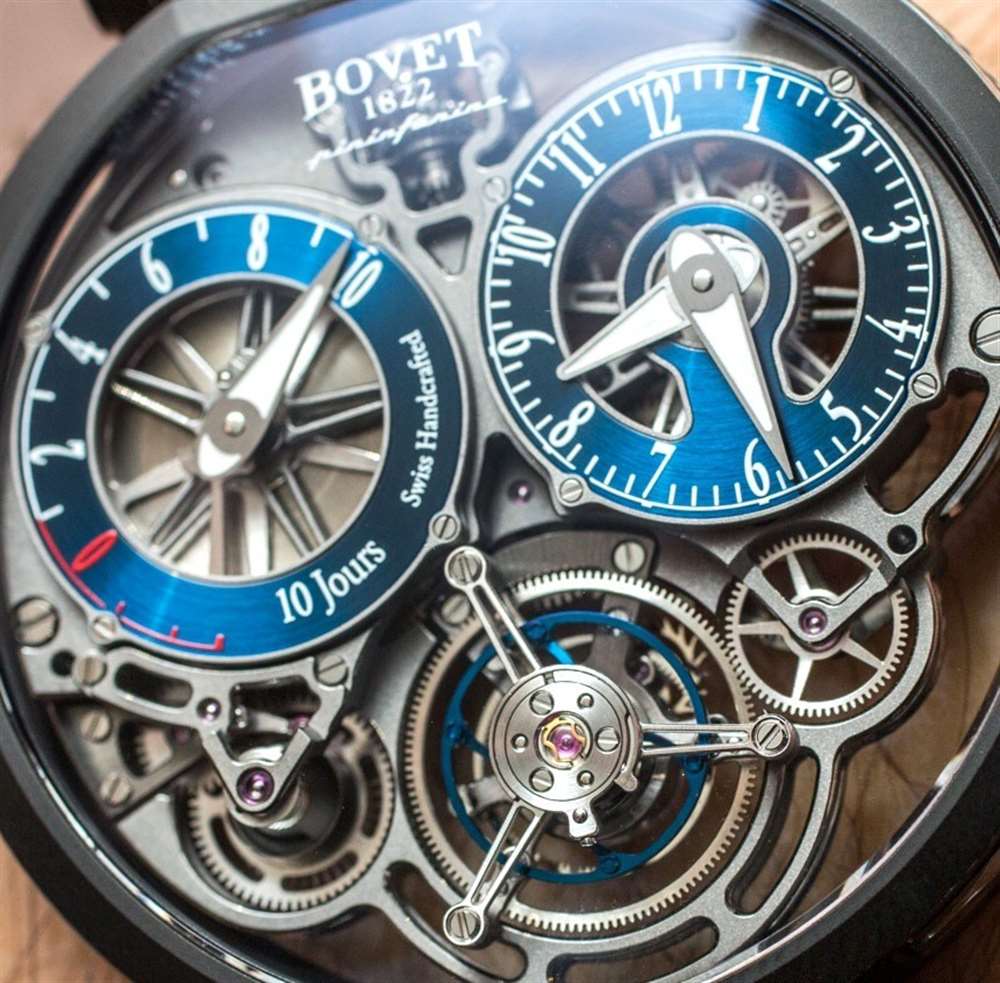 機芯結構和鏤空是純粹的“高級鐘表學”,具有一系列精美而現(xiàn)代的裝飾細節(jié)和修飾。我知道 Bovet 時計的設計并不適合所有人,但我仍然相信大多數(shù)鐘表愛好者都能輕松地支持這些手表的技術和技巧。此外,如此顯眼的大型飛行陀飛輪腕表以及涂有明亮 SuperLumiNova 夜光涂層的指針(請注意,在這些原型型號上,指針是手繪的,因此流明看起來不均勻)的頻率有多高。